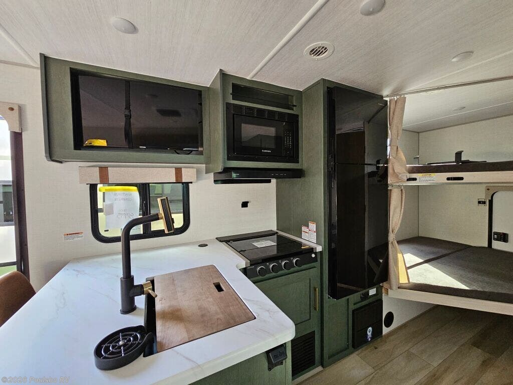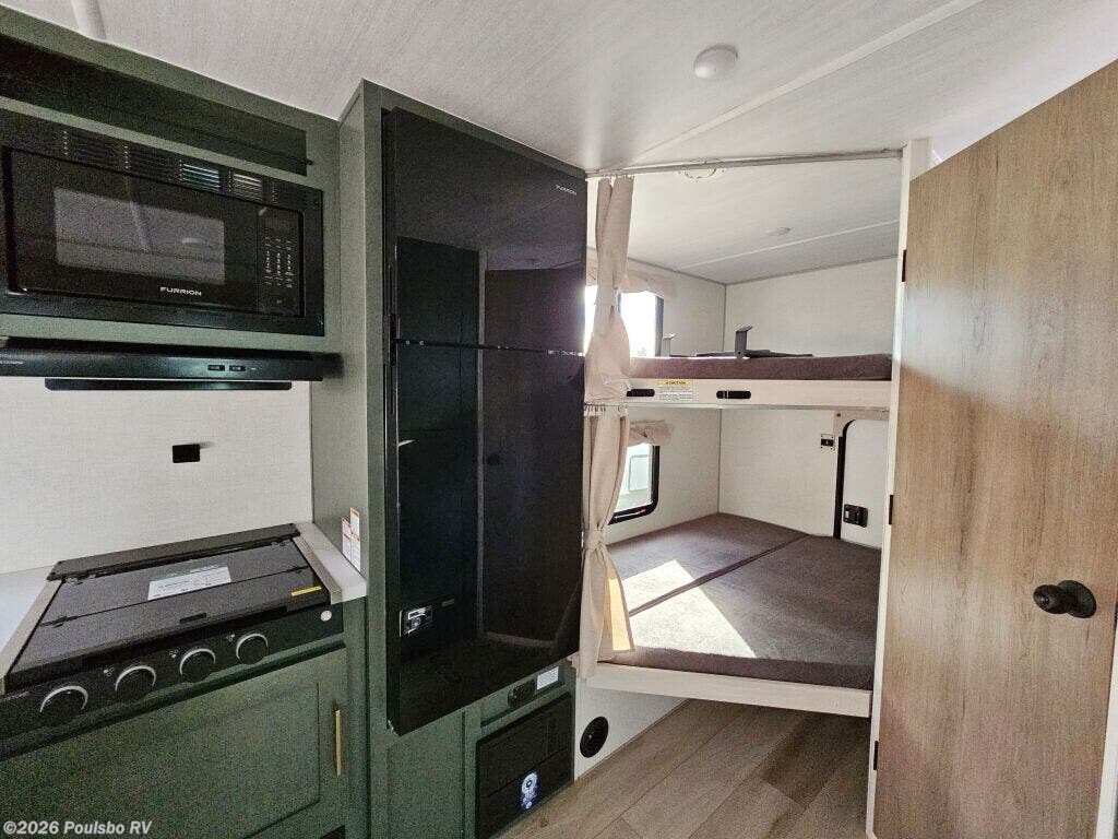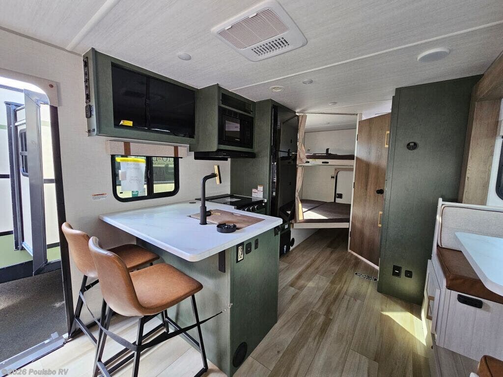 Experience freedom and adventure with the 2026 Forest River No Boundaries NB20.3, a spacious and versatile new travel trailer designed to enhance your outdoor lifestyle. Measuring 26.25 feet in length and built for families or groups, this RV comfortably accommodates up to eight people, making it ideal for memorable trips with loved ones. Inside, you will find a thoughtfully designed living area that balances comfort and functionality, providing a cozy retreat after a day of exploration. The bunkhouse offers additional private sleeping quarters, perfect for children or guests, contributing to the flexible sleeping arrangements that make this model stand out. The single slide out expands the living space, creating an open and inviting atmosphere where everyone can relax and unwind. Convenience is at the forefront with a powered awning that extends your living area outdoors, ideal for enjoying fresh air and scenic views. For simplicity and stability during setup, this model includes leveling jacks, ensuring you can quickly settle into your campsite with ease. Audio features contribute to entertainment on the road, making every journey enjoyable from start to finish. With a dry weight of 5673 pounds and a hitch weight of 730 pounds, the NB20.3 offers manageable towing without compromising features or comfort. Whether you are embarking on weekend getaways or extended vacations, this RV supports your active lifestyle with durability and practical design. As a family owned, award winning local RV dealer with multiple locations in Sumner, Everett, Kent, and Mt Vernon Washington, Poulsbo RV is here to help you find the perfect RV. Stock#: K6214, VIN: 5ZT2RPJB2TV027584.