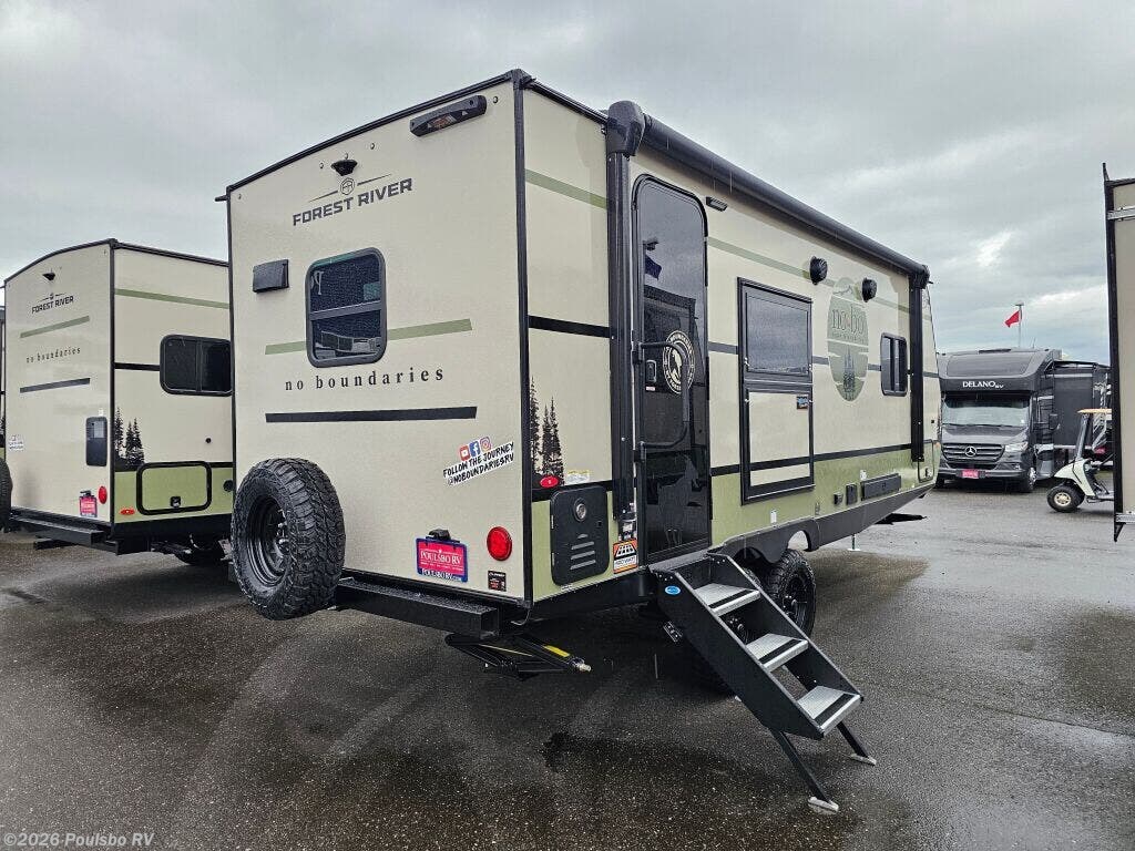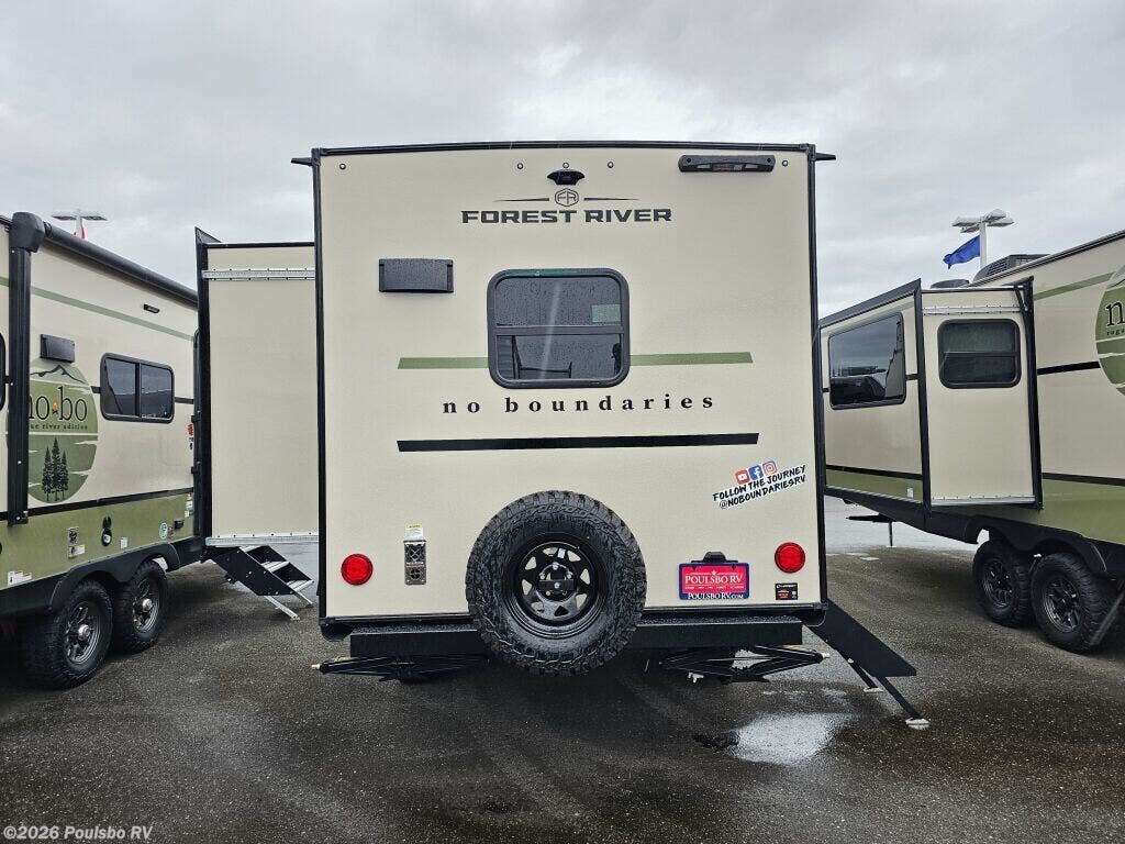 Experience the thrill of adventure with the 2026 Forest River No Boundaries NB19.0, a new compact travel trailer designed to maximize comfort and versatility for two people. Measuring just over 24 feet in length, this RV is perfectly sized for exploring off the beaten path while providing essential living conveniences. The thoughtfully designed interior includes a slide out that expands the living area, offering more room to relax and enjoy meals or entertainment. With high-quality construction and modern features, it delivers a seamless blend of rugged capability and refined comfort. The cozy sleeping space ensures restful nights after full days of outdoor activities. Convenience is enhanced by an awning that provides shade and shelter, allowing you to extend your living space outside and enjoy fresh air comfortably. Stability and ease of setup come from the included leveling jacks, making it simple to create a steady home base wherever you park. This model is equipped with a reliable hitch system for secure towing and manageable dry weight, keeping your journey safe and efficient. As a family owned, award winning local RV dealer with multiple locations in Sumner, Everett, Kent, and Mt. Vernon Washington, Poulsbo RV is here to help you find the perfect RV. Stock#: M3727, VIN: 5ZT2RPHB8TV027630.
