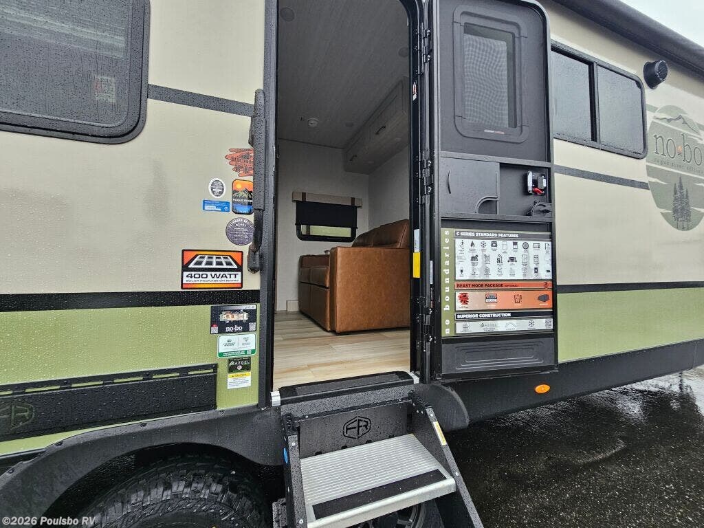 The 2026 Forest River No Boundaries NB20.8 redefines adventure travel with its perfect blend of rugged design and comfortable living. At 32.6 feet in length, this new model is engineered to accommodate up to four people, making it ideal for couples or small families seeking flexibility and convenience on the road. The innovative design enhances your RV experience by offering a spacious living area enriched with a single slide out that expands your interior space, allowing more room to unwind and socialize comfortably. Enjoy the seamless integration of practicality and comfort with features such as a leveling jack system that simplifies setup at any campsite and a large awning that offers ample outdoor shade for relaxing evenings or meals outside. This model provides thoughtful conveniences to enhance your journey, including ample storage and modern amenities designed to make every trip enjoyable without sacrificing performance or style. Whether you are exploring remote destinations or joining a weekend getaway, the Forest River No Boundaries NB20.8 stands ready to support your adventurous lifestyle with durability and a well-planned interior layout. Poulsbo RV is proud to present this model as part of our extensive inventory, offering a chance to elevate your outdoor experiences. As a family-owned, award-winning local RV dealer with multiple locations in Sumner, Everett, Kent, and Mt. Vernon Washington, Poulsbo RV here to help you find the perfect RV. Stock#: M3734, VIN: 5ZT2RPKB5TV027741.