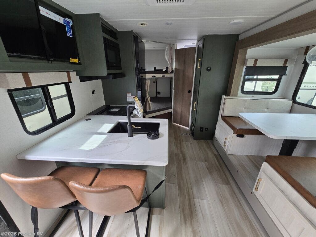 The 2026 Forest River No Boundaries NB20.3 redefines outdoor adventure with its versatile design and modern features built to enhance your RV lifestyle. This new model combines rugged capability with well-thought-out living space, perfect for those who want to explore without sacrificing comfort. With a dry weight of 5673 pounds and a GVWR of 7173 pounds, it strikes a balance between portability and durability. The floor plan includes a flexible bunkhouse setup that comfortably sleeps up to eight people, ensuring ample space for family and friends alike. Inside, the living area is designed to maximize functionality and comfort, featuring a slide out that expands your living space and provides plenty of room to unwind after a day of adventure. Convenience is key with dual manual leveling jacks both front and rear, helping you easily stabilize your setup on uneven terrain, while an awning offers reliable shade and shelter for outdoor relaxation. Whether enjoying meals, entertainment, or rest, every element caters to a seamless and enjoyable RV experience. This unit comes with a hitch weight of 730 pounds, of which you can depend on for secure towing. As a family owned, award winning local RV dealer with multiple locations in Sumner, Everett, Kent, and Mt. Vernon Washington, Poulsbo RV here to help you find the perfect RV. Stock#: K6259, VIN: 5ZT2RPJB6TV027927.
