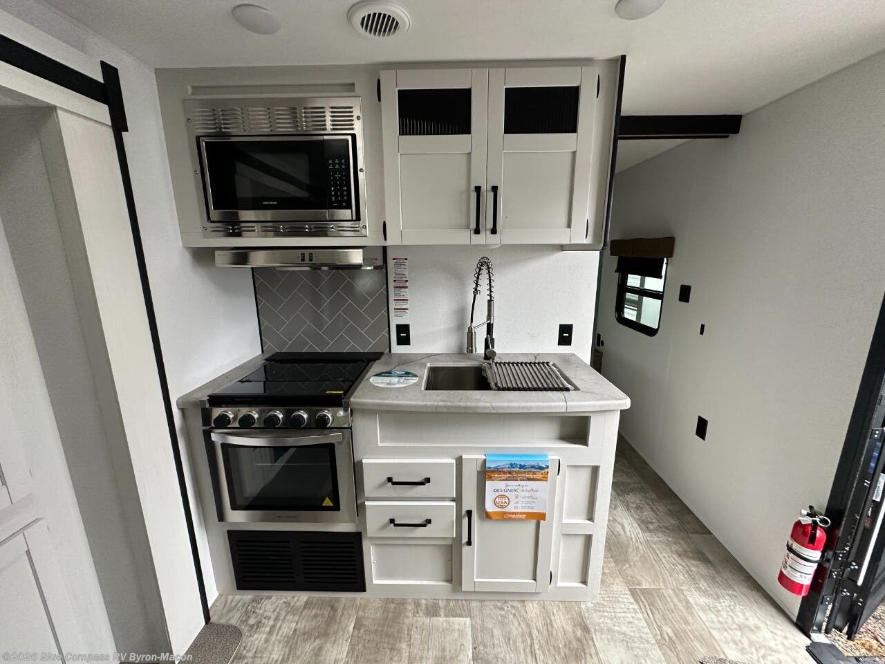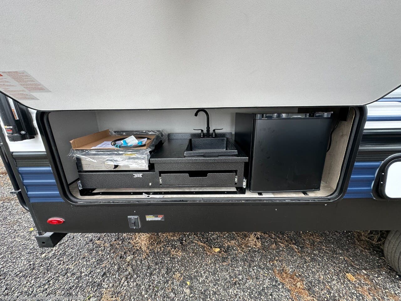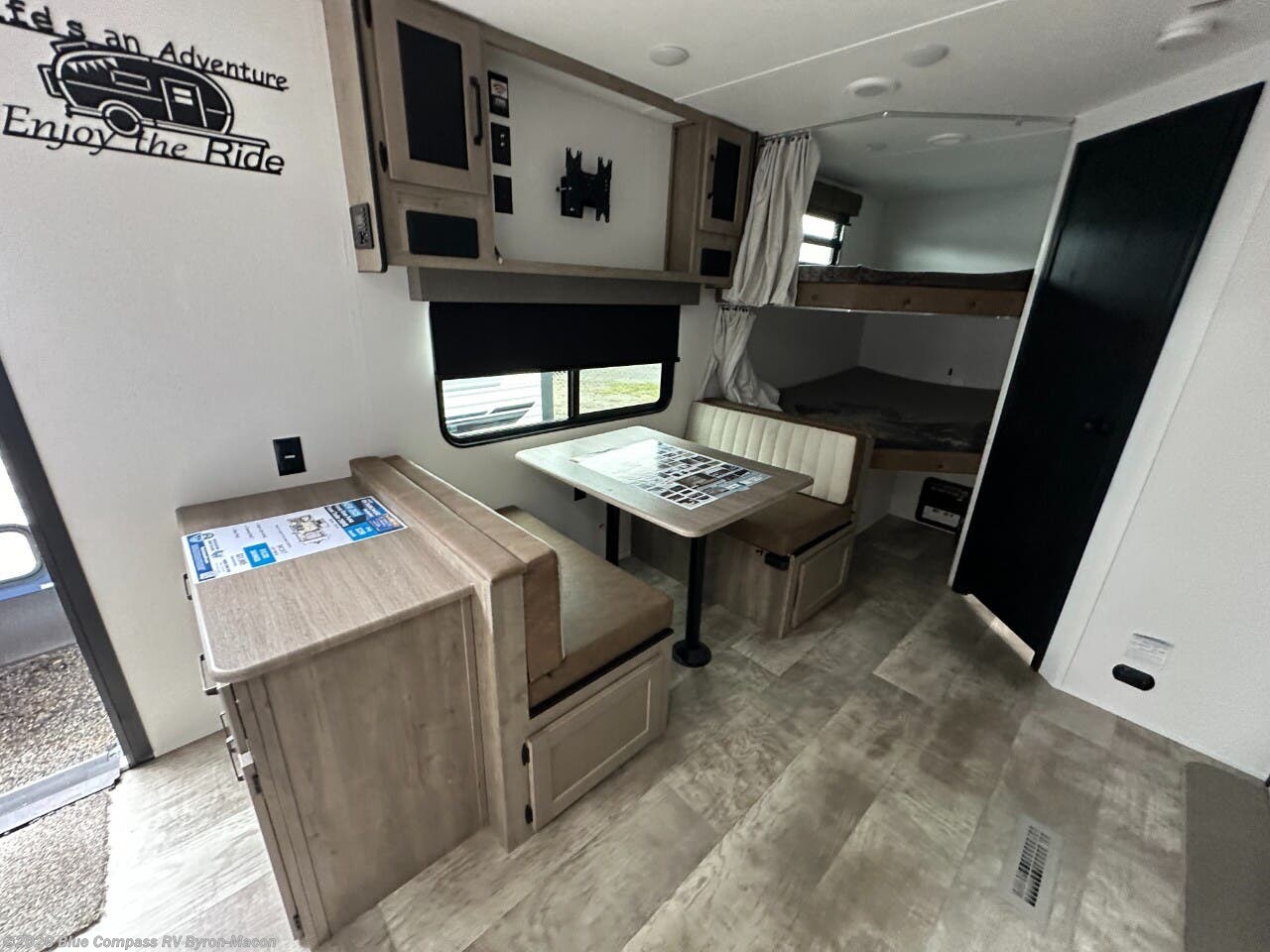 There's room for the whole family in this travel trailer! You will enjoy your own privacy with the front private bedroom which features a 60" x 80" queen bed with shirt closets on either side to hang your clothes, and a shelf above for your books or alarm clock. The kiddos can sleep on the set of 48" x 76" double-size bunk beds. They can even invite a friend or two to join in on the fun and sleep on either the sofa or booth dinette once converted. Everyone can freshen up in the rear corner bathroom with a 32" x 40" shower with a seat, and keep their bellies full with the stainless steel oven and range. You could even choose to add the optional outside mini kitchen if you enjoy cooking outdoors!