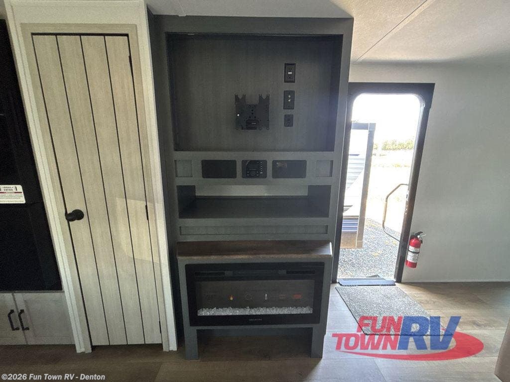 Experience a home away from home with this travel trailer! The front kitchen has everything you will need to prepare your best meals and you can enjoy them at the booth dinette. The rear private bedroom has a 72" x 80" king bed slide across from a dresser, a wardrobe, and a closet with washer and dryer prep. Freshen up in the full bathroom with the 32" x 40" shower and then enjoy a cup of coffee relaxing in one of the two recliners or on the sofa! Choose the optional outside micro kitchen with a griddle for even more convenience!