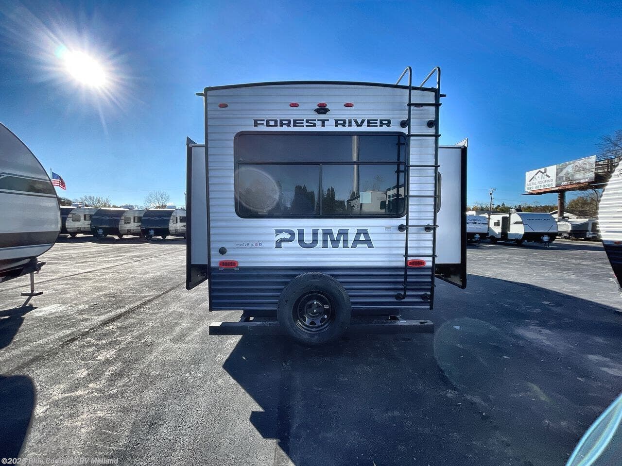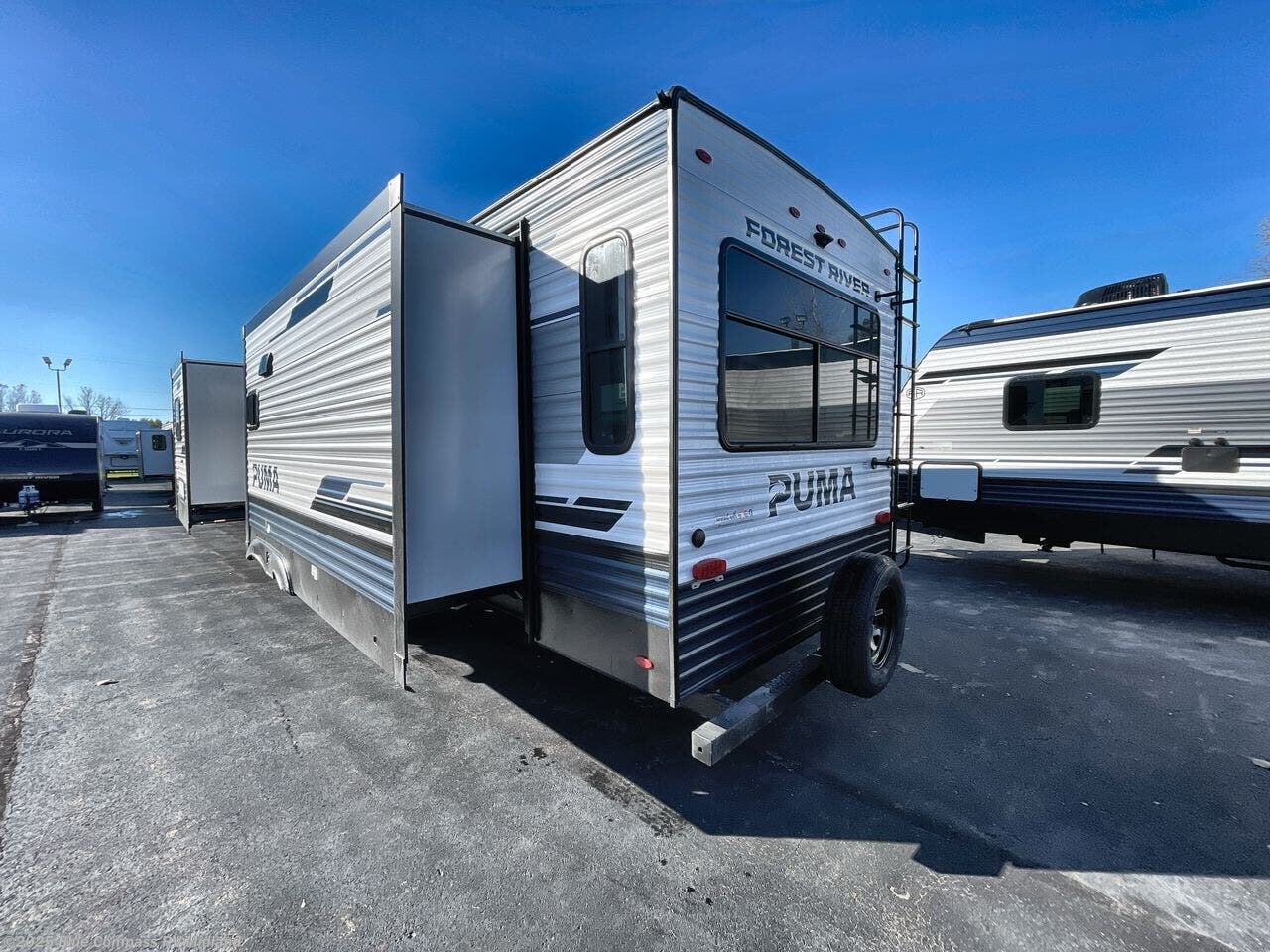 If you're looking for family-fun adventures, then you need one of these Forest River Puma travel trailers! They are built rugged, easy to tow, and jam packed with features. The Darco wrapped underbelly will help protect your unit, and the roof and side mount solar prep gives you the option to add off-grid power. Inside, the Congoleum linoleum will be easy to keep clean, and the night roller shades will provide privacy when it's time to turn in. You'll also enjoy an electric awning with an LED light strip plus an AM/FM/Bluetooth stereo and two outside speakers to keep the party going!
