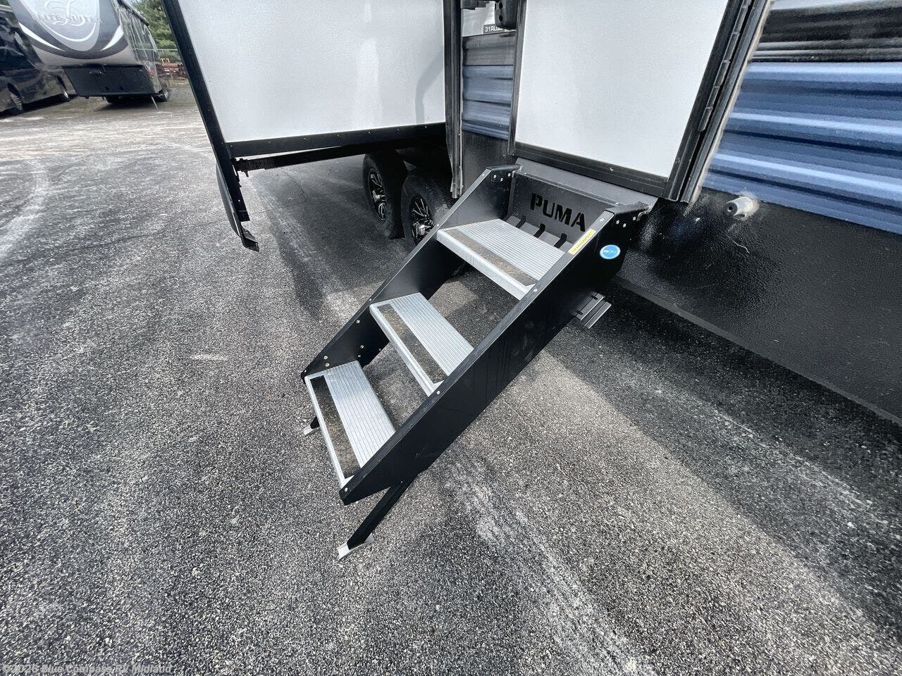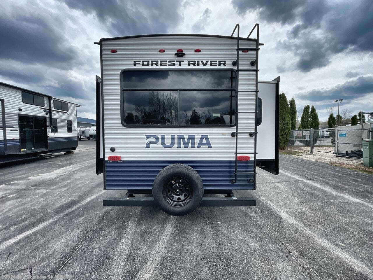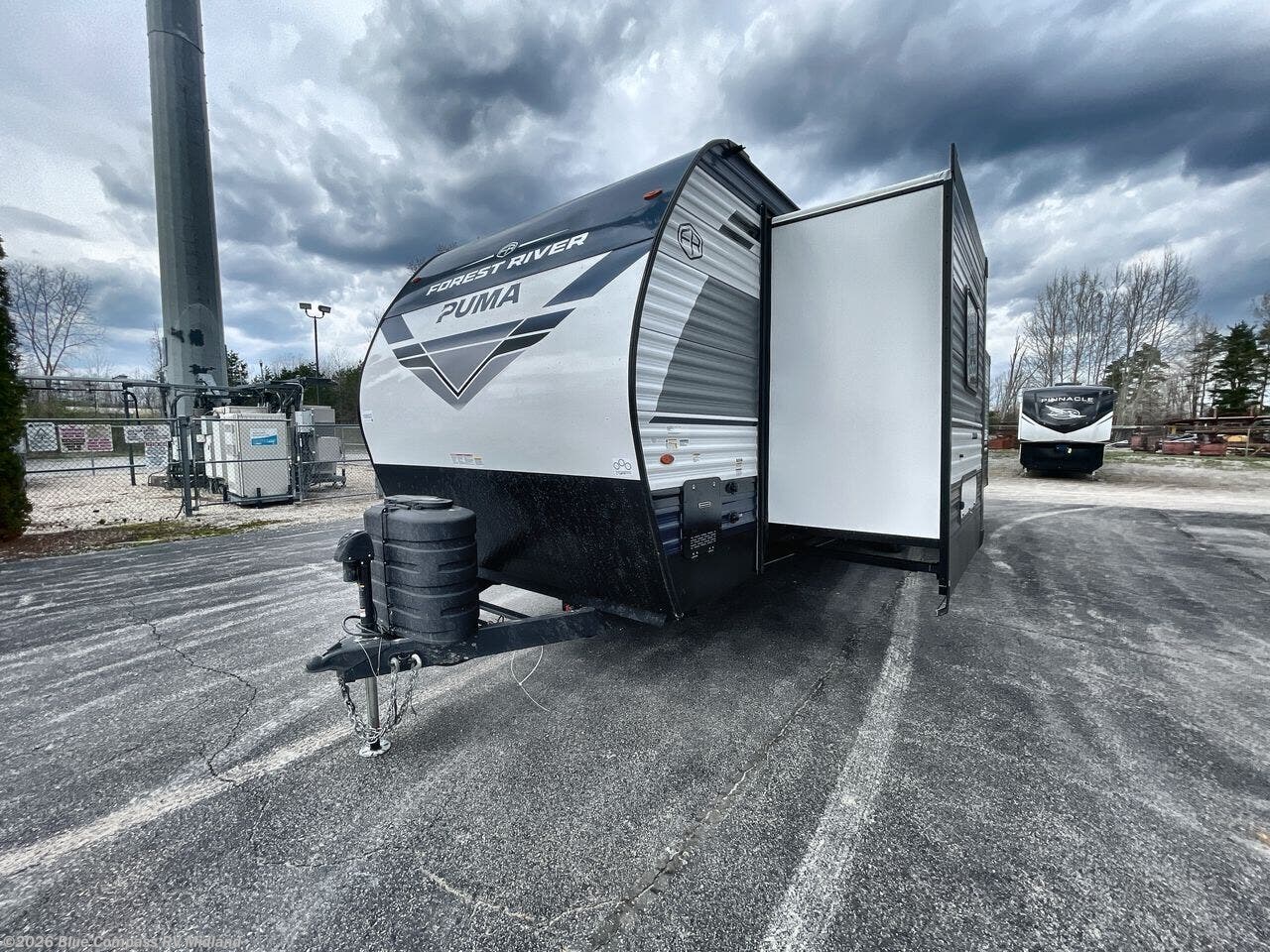 If you're looking for family-fun adventures, then you need one of these Forest River Puma travel trailers! They are built rugged, easy to tow, and jam packed with features. The Darco wrapped underbelly will help protect your unit, and the roof and side mount solar prep gives you the option to add off-grid power. Inside, the Congoleum linoleum will be easy to keep clean, and the night roller shades will provide privacy when it's time to turn in. You'll also enjoy an electric awning with an LED light strip plus an AM/FM/Bluetooth stereo and two outside speakers to keep the party going!
