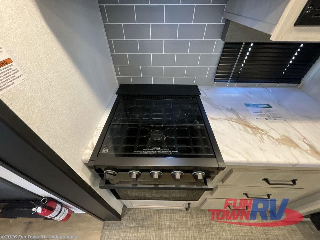 You will be the talk of the campground with this travel trailer! The front private bedroom has a queen bed slide across from a dresser and a front closet plus a second closet with washer and dryer prep . Freshen up each morning in the full bathroom with the 34" x 34" radius shower then head to the kitchen to fry up some eggs with the stainless steel oven and range. You can enjoy your meals at the booth dinette, and the kitchen island will make your clean up easier with the sink that has a high rise faucet and sprayer. The rear private bunkhouse has a 32" x 69" bunk above a jiffy sofa slide, a 36" x 69" bunk above a 36" x 71" bunk and a linen closet. Choose the optional outside mini kitchen for even more convenience!