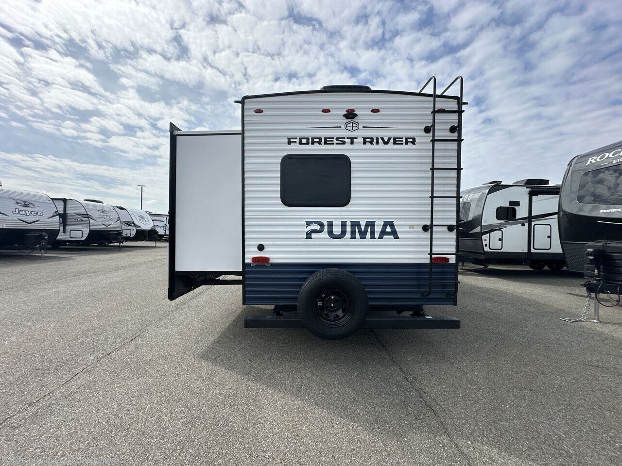 If you're looking for family-fun adventures, then you need one of these Forest River Puma travel trailers! They are built rugged, easy to tow, and jam packed with features. The Darco wrapped underbelly will help protect your unit, and the roof and side mount solar prep gives you the option to add off-grid power. Inside, the Congoleum linoleum will be easy to keep clean, and the night roller shades will provide privacy when it's time to turn in. You'll also enjoy an electric awning with an LED light strip plus an AM/FM/Bluetooth stereo and two outside speakers to keep the party going!