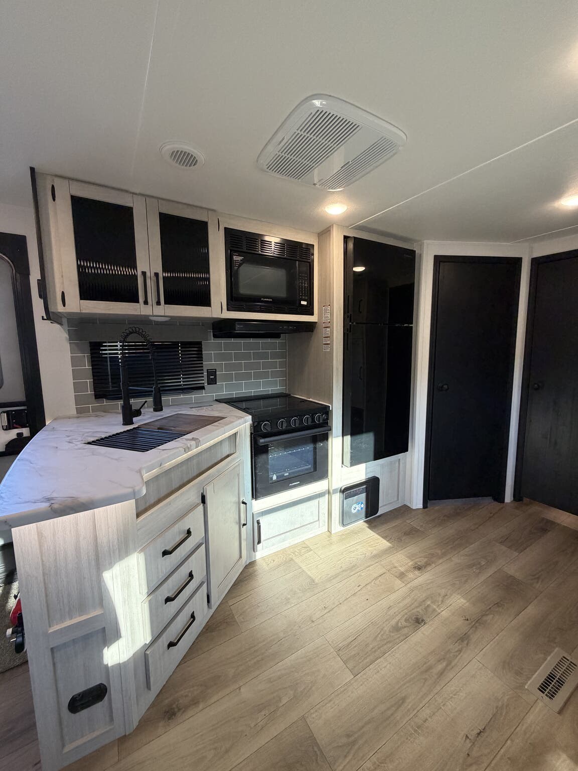 Convection Microwave, Furnace, Microwave, Oven, Refrigerator (12V), Stove, Tankless Demand Gas Water Heater -