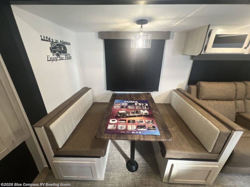 If you're looking for family-fun adventures, then you need one of these Forest River Puma travel trailers! They are built rugged, easy to tow, and jam packed with features. The Darco wrapped underbelly will help protect your unit, and the roof and side mount solar prep gives you the option to add off-grid power. Inside, the Congoleum linoleum will be easy to keep clean, and the night roller shades will provide privacy when it's time to turn in. You'll also enjoy an electric awning with an LED light strip plus an AM/FM/Bluetooth stereo and two outside speakers to keep the party going!