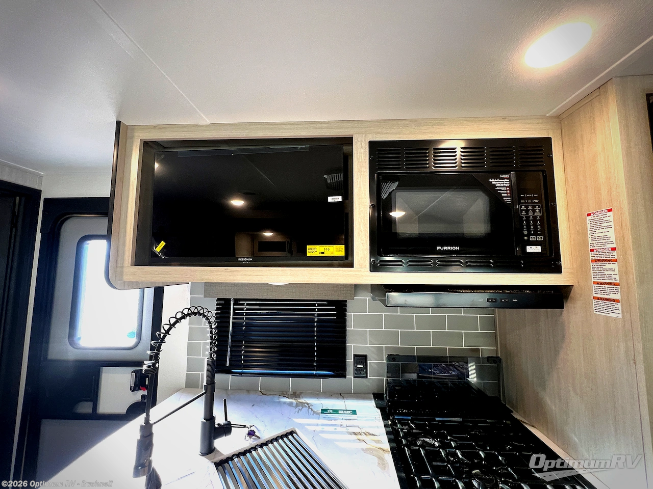 The whole family will love camping in this travel trailer! The kids will have their own privacy with the rear private bunkhouse which has a 32" x 69" bunk above a jiffy sofa slide and a 38" x 76" bunk above an entertainment center to keep them occupied on those rainy days. And you will have your own privacy with the front private bedroom that has a queen bed slide across from a dresser and a front closet. There is even a second closet with washer and dryer prep if you choose to add those appliances. Everyone can stay clean in the full bathroom with the 34" x 34" radius shower and their bellies full with the full kitchen. And you can choose between two outside kitchen options for even more convenience!