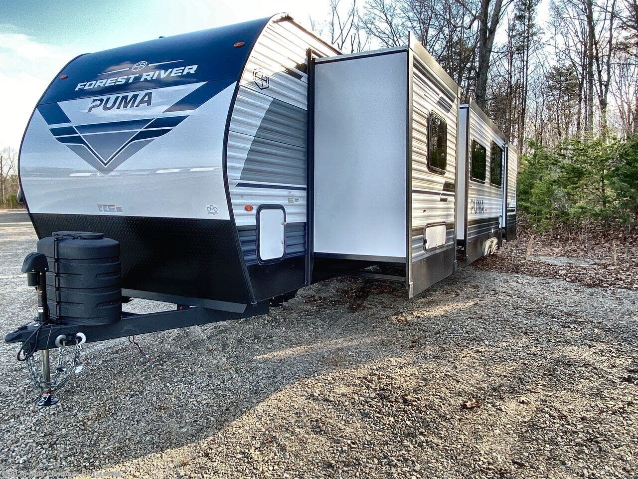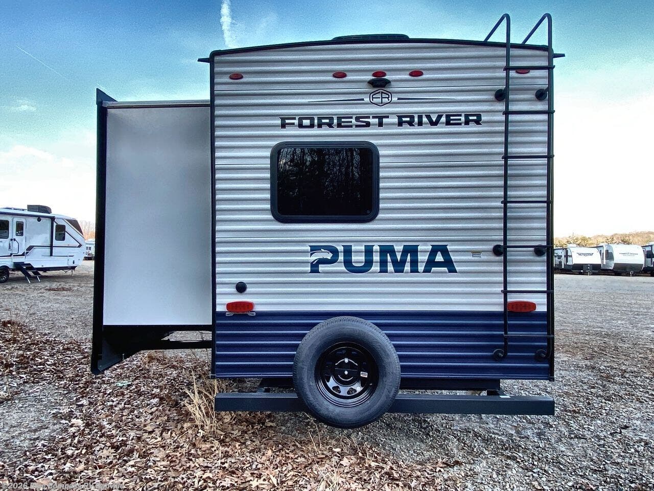If you're looking for family-fun adventures, then you need one of these Forest River Puma travel trailers! They are built rugged, easy to tow, and jam packed with features. The Darco wrapped underbelly will help protect your unit, and the roof and side mount solar prep gives you the option to add off-grid power. Inside, the Congoleum linoleum will be easy to keep clean, and the night roller shades will provide privacy when it's time to turn in. You'll also enjoy an electric awning with an LED light strip plus an AM/FM/Bluetooth stereo and two outside speakers to keep the party going!
