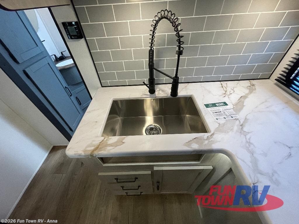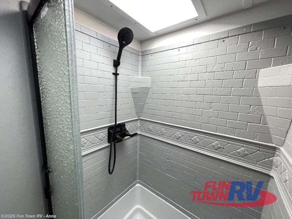 This travel trailer is perfect for camping with a larger group of friends or if you have older kids since there are two private bunkrooms! Each room includes a bunk bed and storage space for clothes, shoes, and more. You'll enjoy your own space up front in the master bedroom that includes a queen bed, dual shirt closets, and one of the dual entry doors to the unit for added convenience. Everyone can come together in the combined living area and kitchen that includes a large slide out with a sofa and booth dinette, plus there is a fireplace to make this space feel more like home. A full kitchen inside lets you create home-cooked meals each day, and you can choose to add the optional micro kitchen with a griddle for a pancake breakfast outdoors!