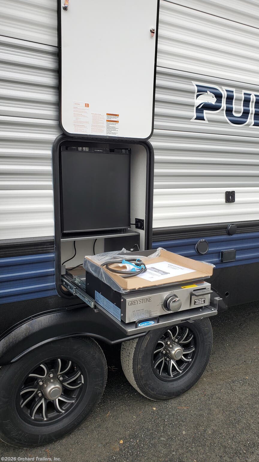 New 2026 Forest River Puma 337BH travel trailer. Fantastic bunkhouse floor plan with unique features! Two rear seperate rear bunk rooms! Comfortable front master bedroom with pass-through storage beneath, and residential queen bed. GE Air conditioner. 11cuft 12v refrigerator with door that opens both ways! Theater seating. Booth dinette converts to a bed. Electric fireplace. Smart TV. Pass-through bathroom features glass shower surround, seat in shower, and lots of storage. Outside kitchen with additional refrigerator and griddle! Call today for more info!