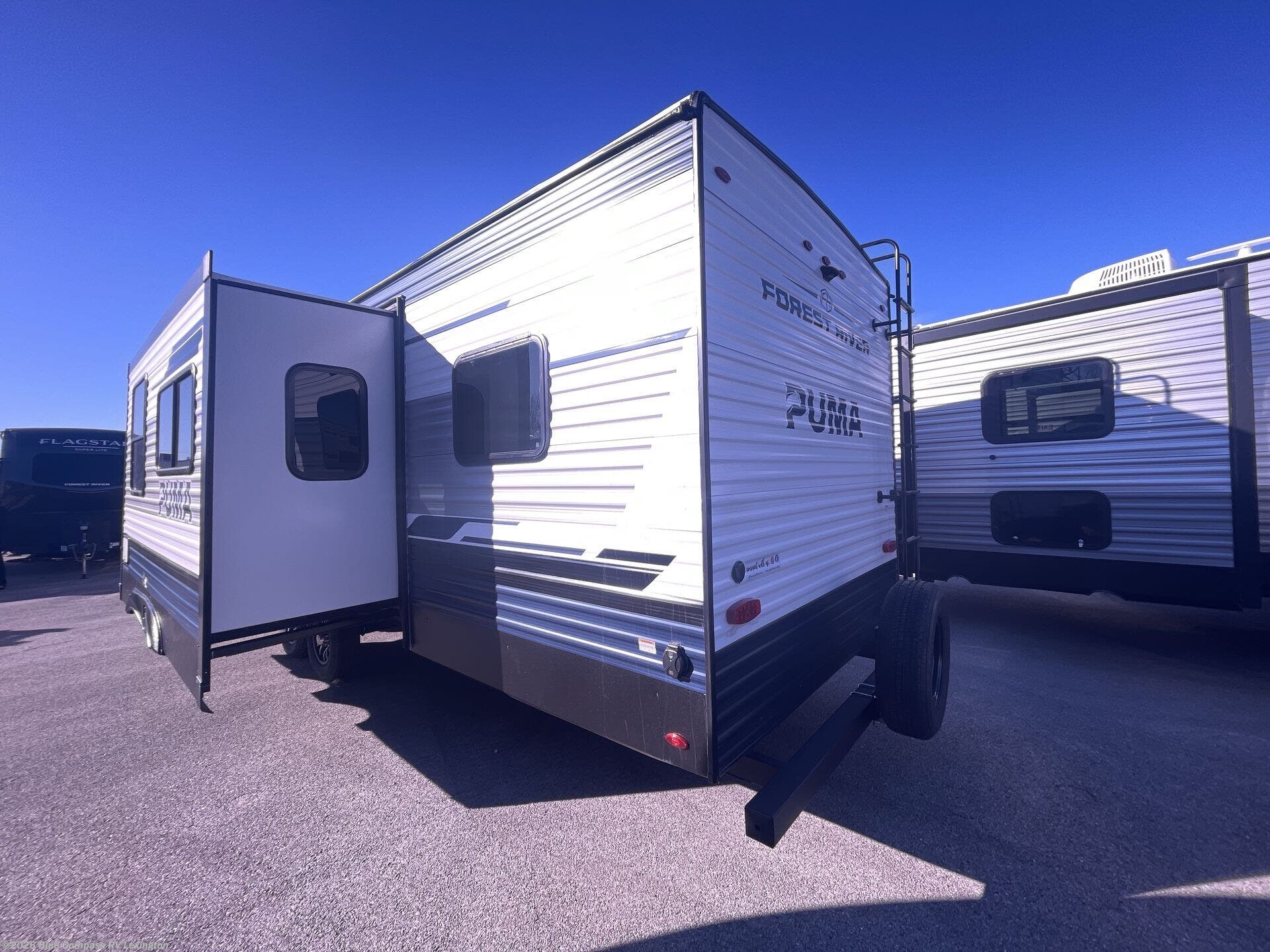 If you're looking for family-fun adventures, then you need one of these Forest River Puma travel trailers! They are built rugged, easy to tow, and jam packed with features. The Darco wrapped underbelly will help protect your unit, and the roof and side mount solar prep gives you the option to add off-grid power. Inside, the Congoleum linoleum will be easy to keep clean, and the night roller shades will provide privacy when it's time to turn in. You'll also enjoy an electric awning with an LED light strip plus an AM/FM/Bluetooth stereo and two outside speakers to keep the party going!