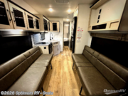 Pack your bags, grab your helmet, and load up the dirt bikes in this toy hauler for four! There is 11' of cargo space for your toys plus two flip-up sleeper sofas with a dinette for seating and sleeping space. If you have even more guests, just choose the optional queen bed electric lift. The kitchen on this unit includes everything you need to prepare meals each day, including a 21" oven, a convection microwave with an air fryer, plus an 11-cu. ft. 12V refrigerator. You might even like to choose the optional outside kitchen with a griddle for breakfast outdoors! The full bath includes a private shower and toilet, with the sink right across the hall so two people can freshen up before bed, and the front bedroom is sure to bring comfort with its RV queen bed, wardrobe, and bedroom shelf for your things!