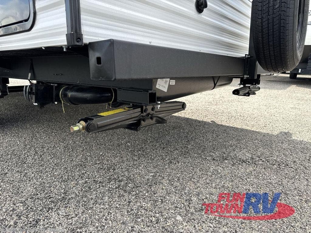 It will be so easy to enjoy camping trips in this single axle travel trailer! There is a front RV queen bed with flip-up storage at the foot of the bed for your belongings, and any additional guests can sleep on the bunk beds and sofa. A full kitchen includes a stainless two burner cooktop and stainless microwave to cook meals each day, and the 4.3 cu. ft. 12V black glass refrigerator will keep your food fresh. And a private bath with a toilet and shower will let you freshen up without having to use the camp's facilities!