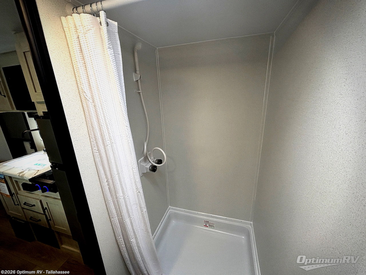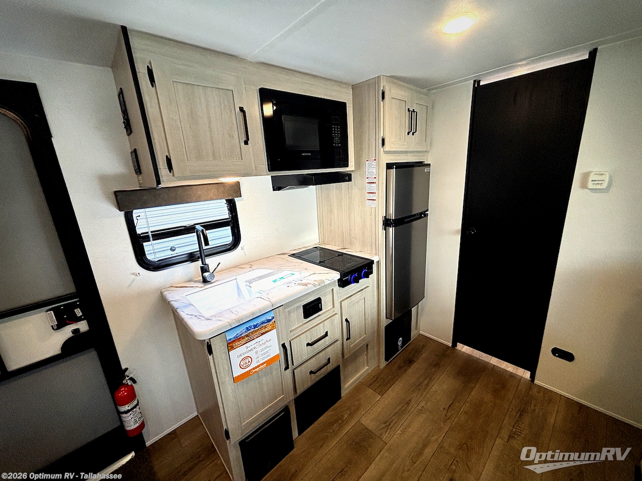This travel trailer includes everything you need for camping trips at the lake. You'll sleep great each night on the front RV queen bed, or you can choose the optional Murphy bed with a sofa if you need more seating space during the day. The chef of your group can make meals on the two burner cooktop or in the microwave oven, then you can dine around the U-shaped dinette slide. A full rear bath includes a 36" x 30" shower, a toilet, vanity, plus a medicine cabinet to keep your things organized.