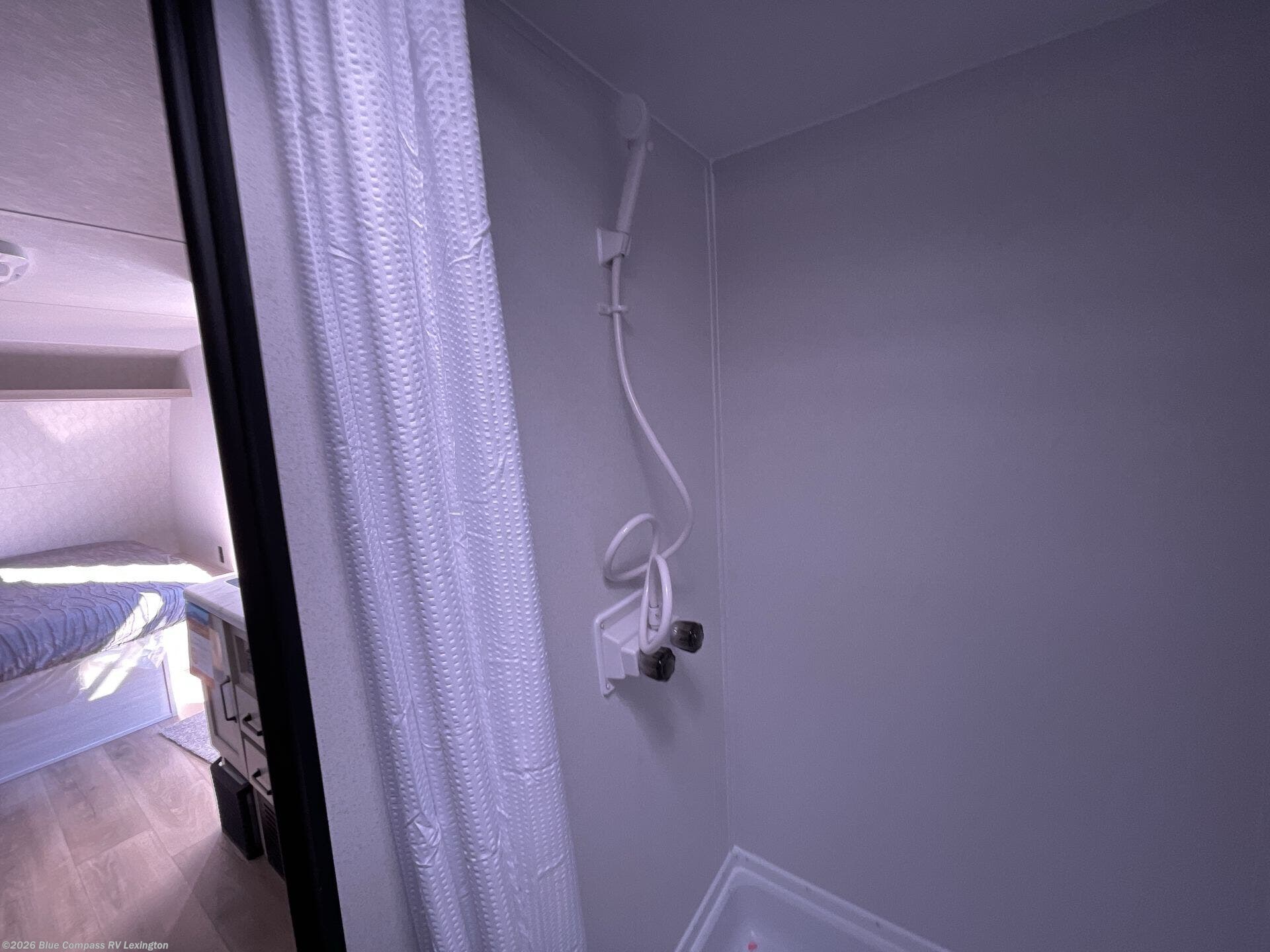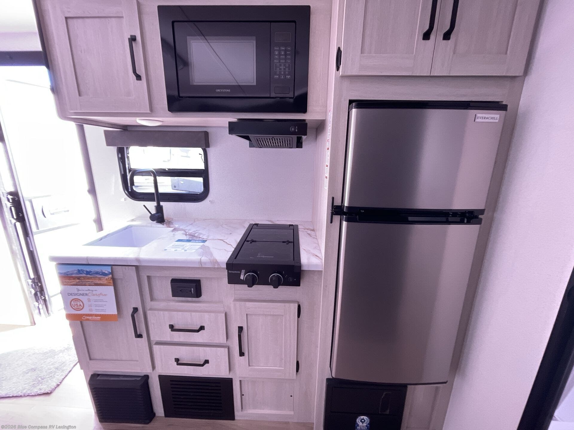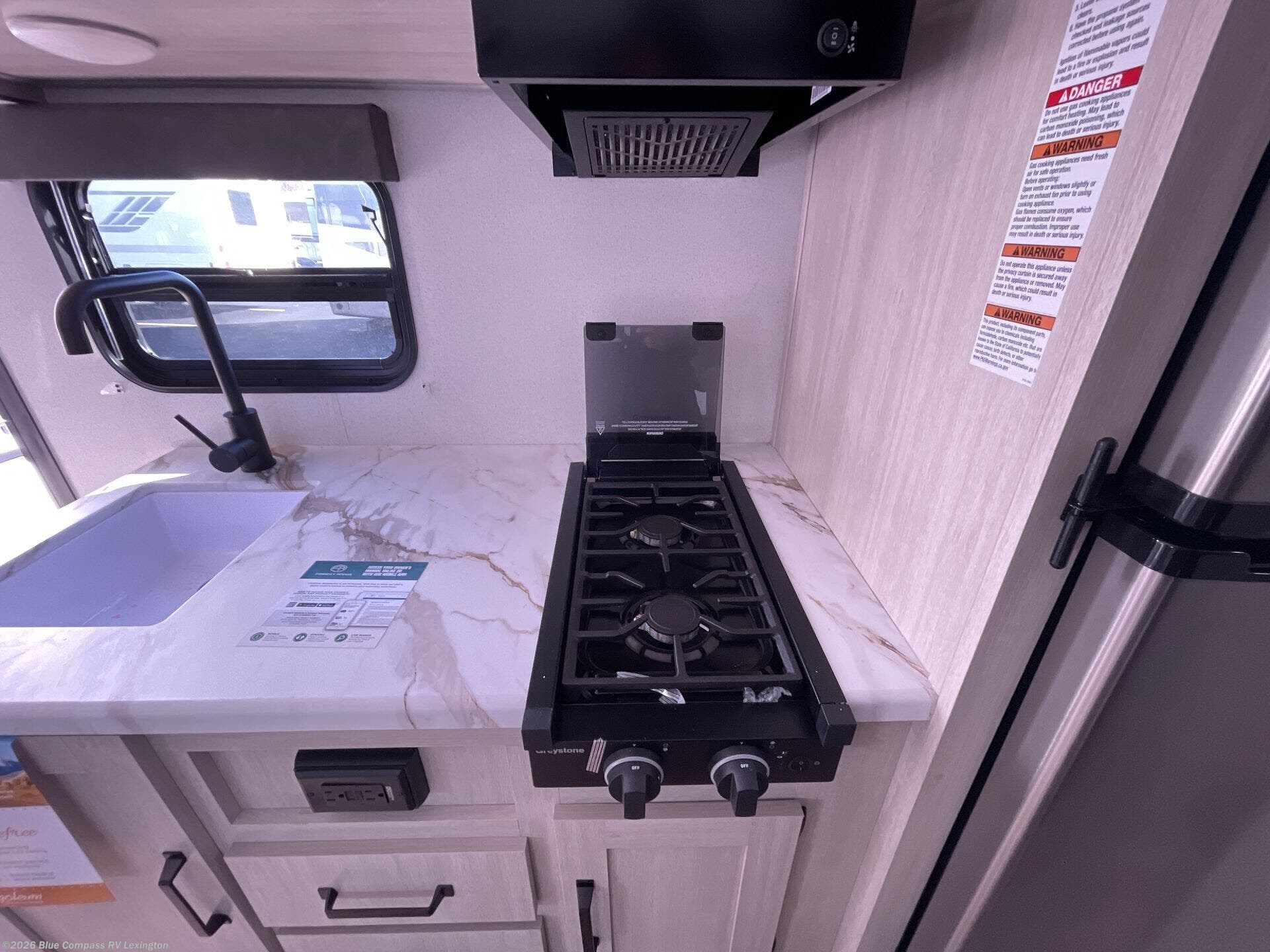 This travel trailer includes everything you need for camping trips at the lake. You'll sleep great each night on the front RV queen bed with a shirt closet to keep your things organized, or you can choose the optional Murphy bed with a shelf. The chef of your group can make meals on the two-burner cooktop or in the microwave oven, then you can dine around the U-shaped dinette slide. A full rear bath includes a 36" x 30" shower, a toilet, vanity, plus a medicine cabinet to keep your things organized.