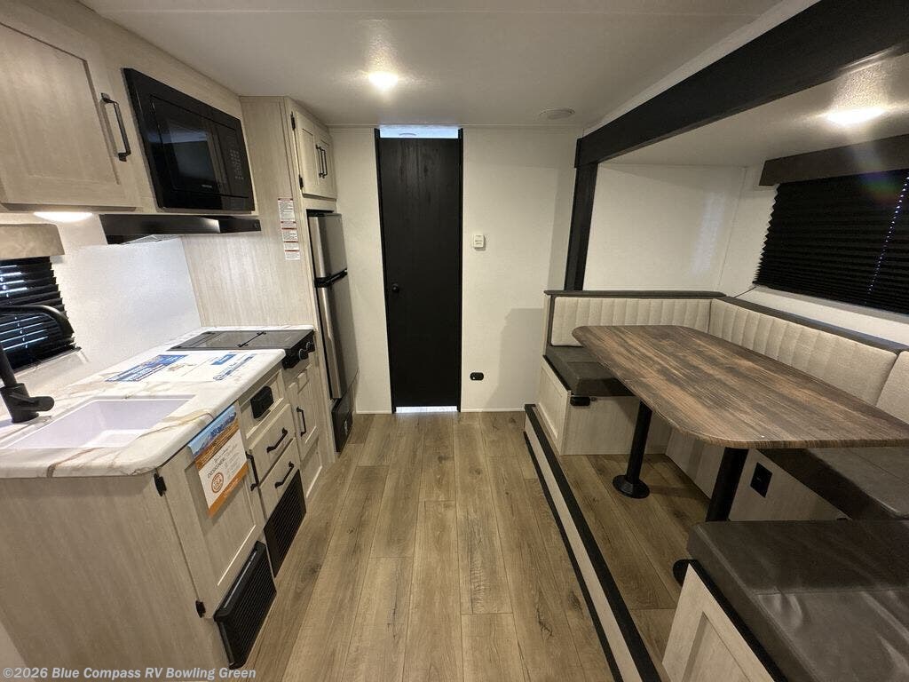 This travel trailer includes everything you need for camping trips at the lake. You'll sleep great each night on the front RV queen bed with a shirt closet to keep your things organized, or you can choose the optional Murphy bed with a shelf. The chef of your group can make meals on the two-burner cooktop or in the microwave oven, then you can dine around the U-shaped dinette slide. A full rear bath includes a 36" x 30" shower, a toilet, vanity, plus a medicine cabinet to keep your things organized.