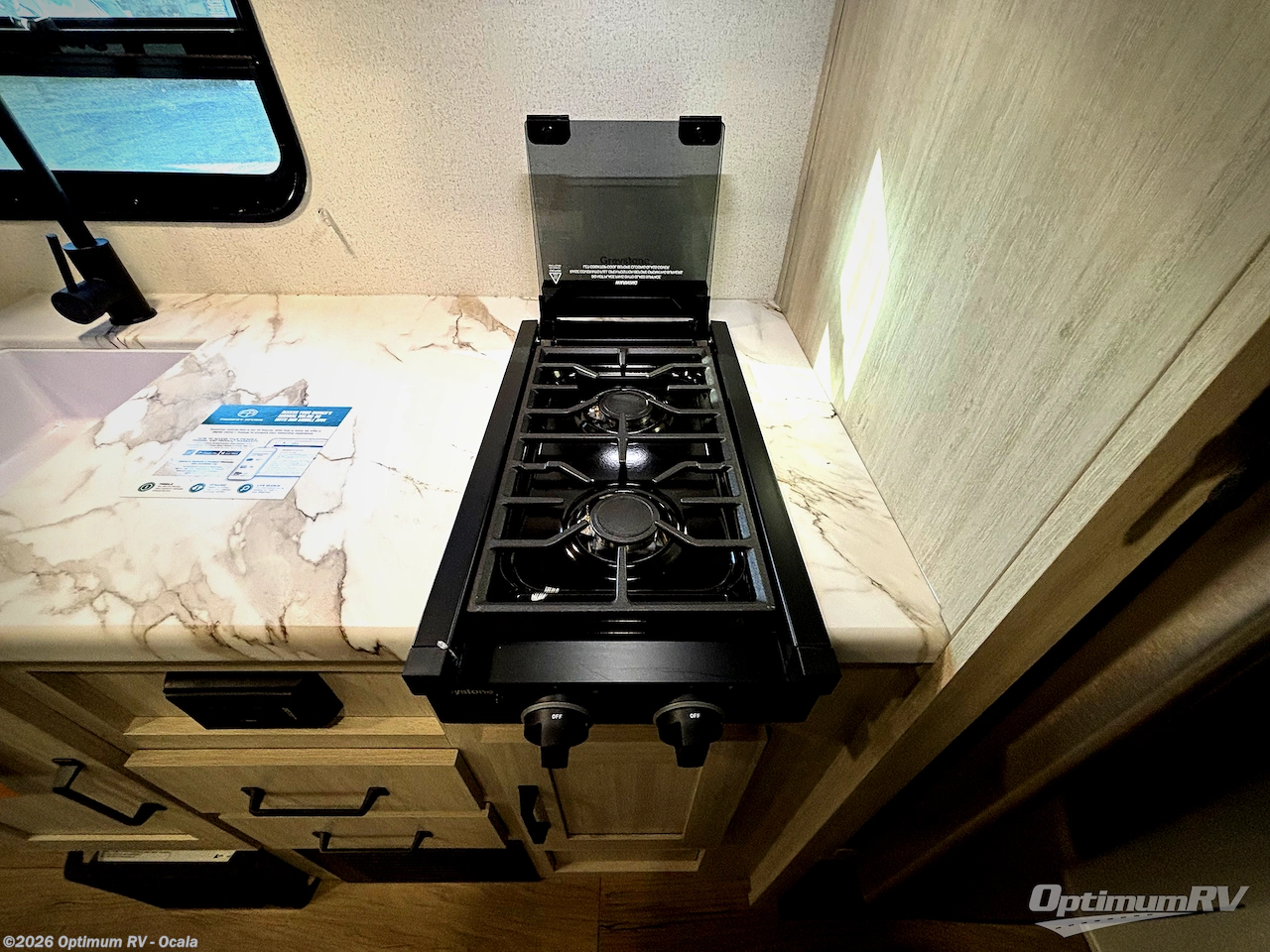 This travel trailer includes everything you need for camping trips at the lake. You'll sleep great each night on the front RV queen bed, or you can choose the optional Murphy bed with a sofa if you need more seating space during the day. The chef of your group can make meals on the two burner cooktop or in the microwave oven, then you can dine around the U-shaped dinette slide. A full rear bath includes a 36" x 30" shower, a toilet, vanity, plus a medicine cabinet to keep your things organized.