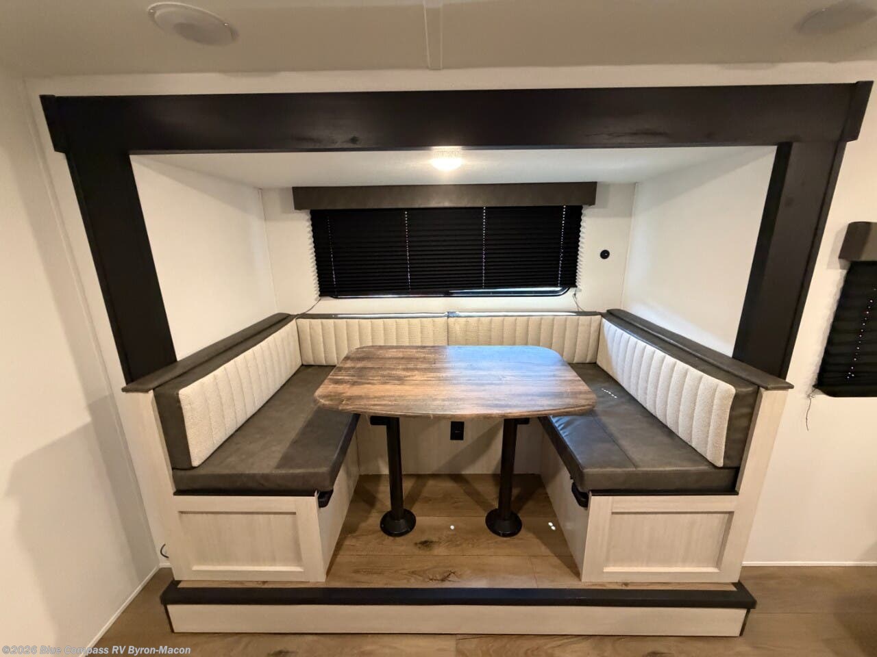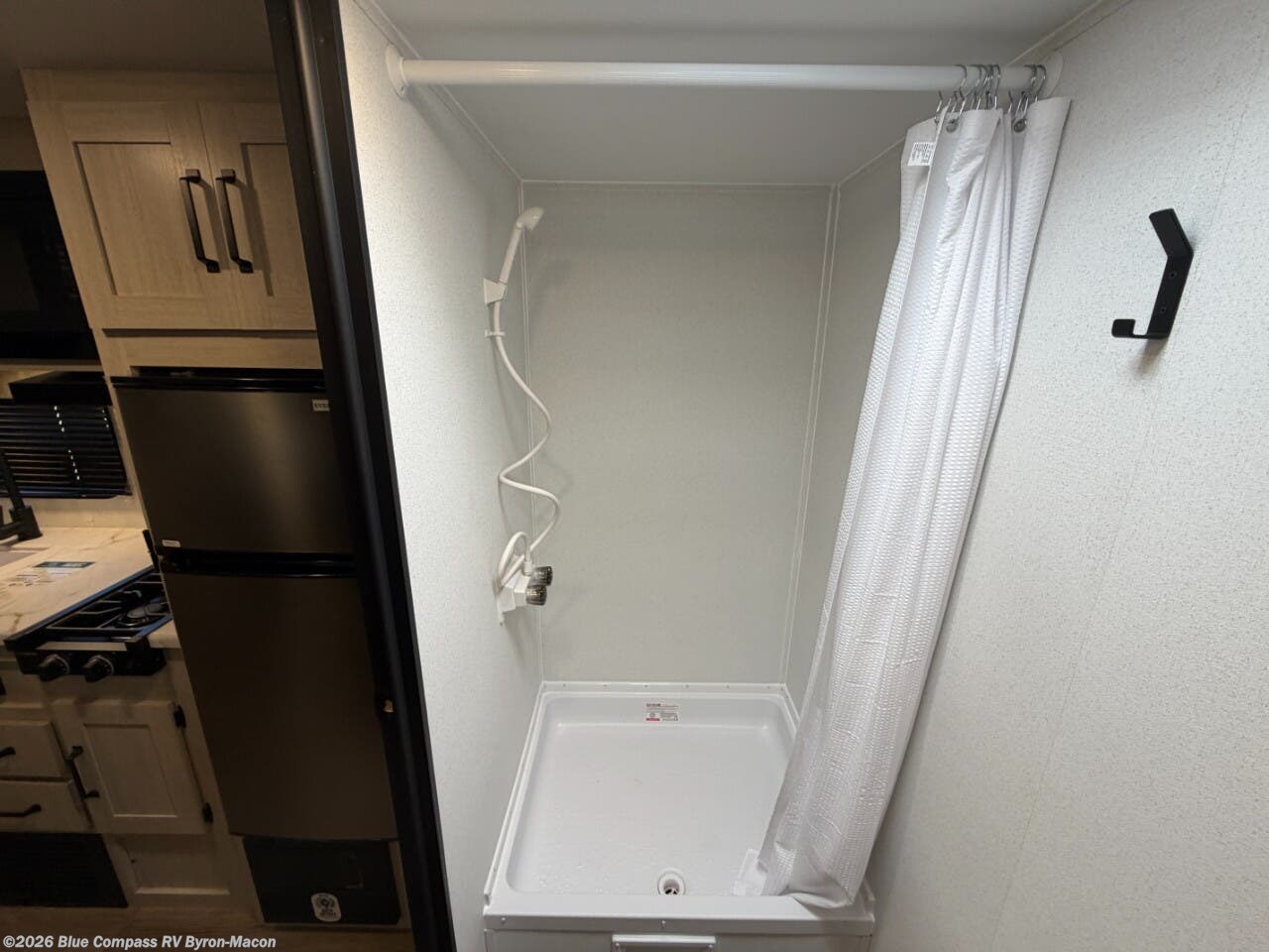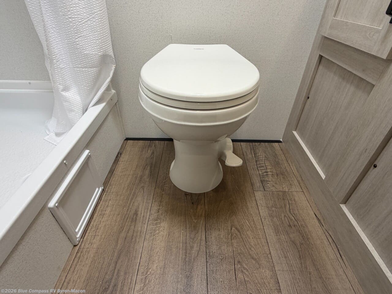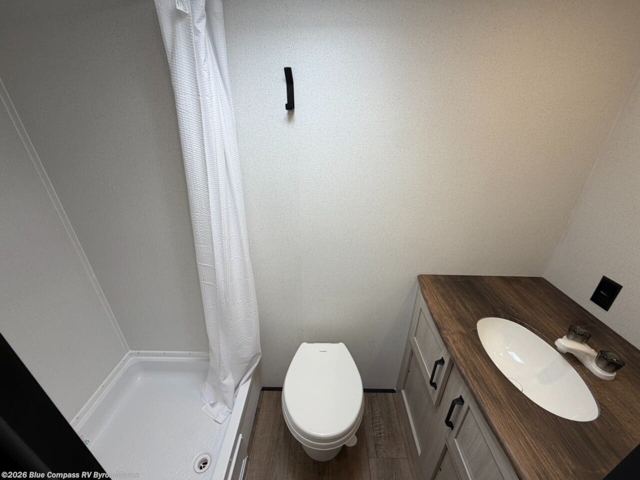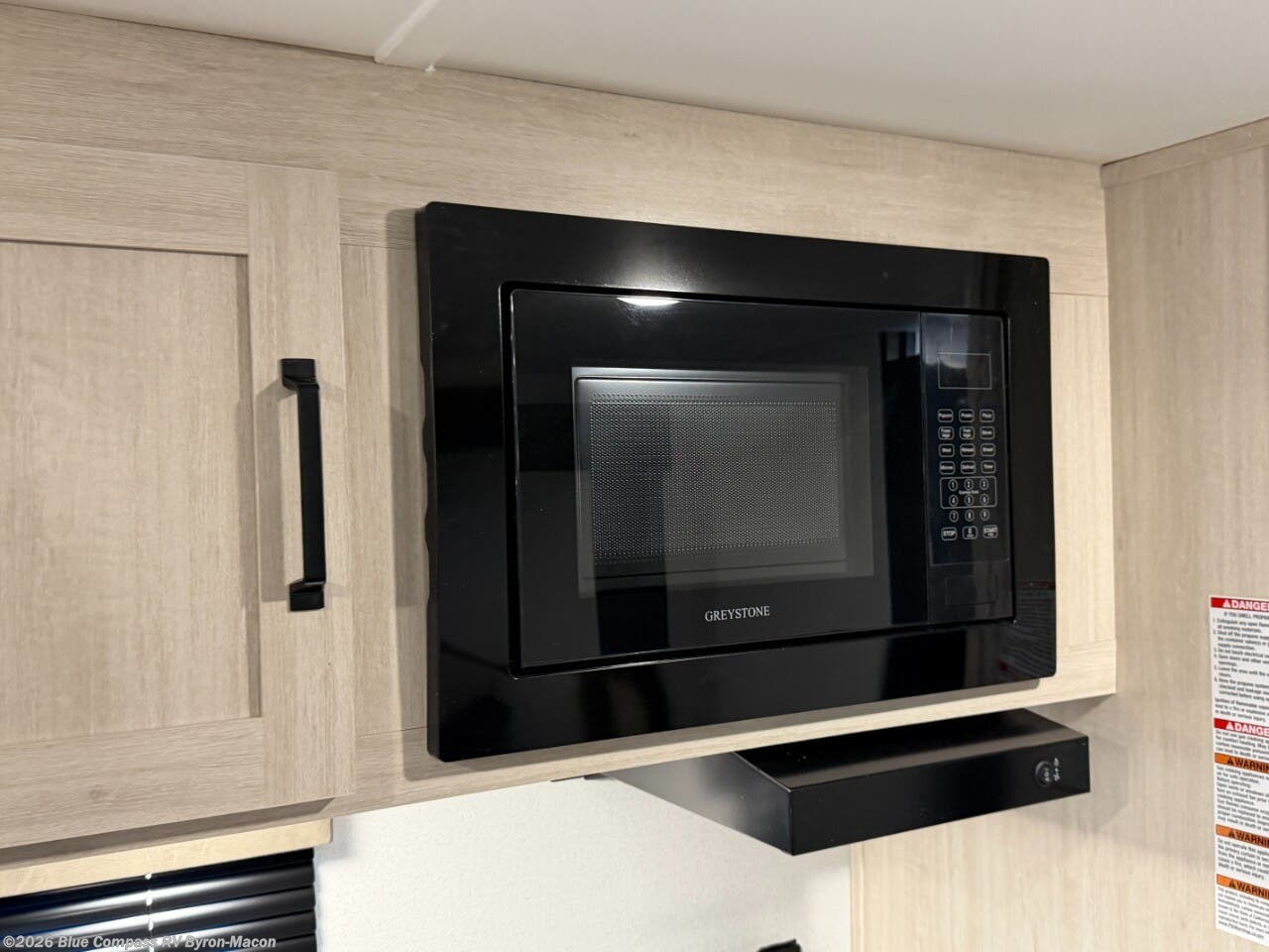 This travel trailer includes everything you need for camping trips at the lake. You'll sleep great each night on the front RV queen bed with a shirt closet to keep your things organized, or you can choose the optional Murphy bed with a shelf. The chef of your group can make meals on the two-burner cooktop or in the microwave oven, then you can dine around the U-shaped dinette slide. A full rear bath includes a 36" x 30" shower, a toilet, vanity, plus a medicine cabinet to keep your things organized.