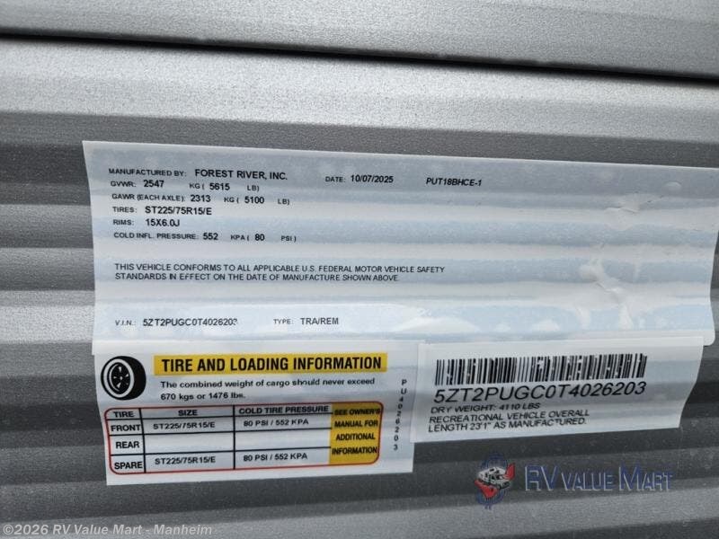 Request More Info on this 2026 Forest River Puma Camping Edition 18BHCE Offered for sale by RV Value Mart - Manheim
