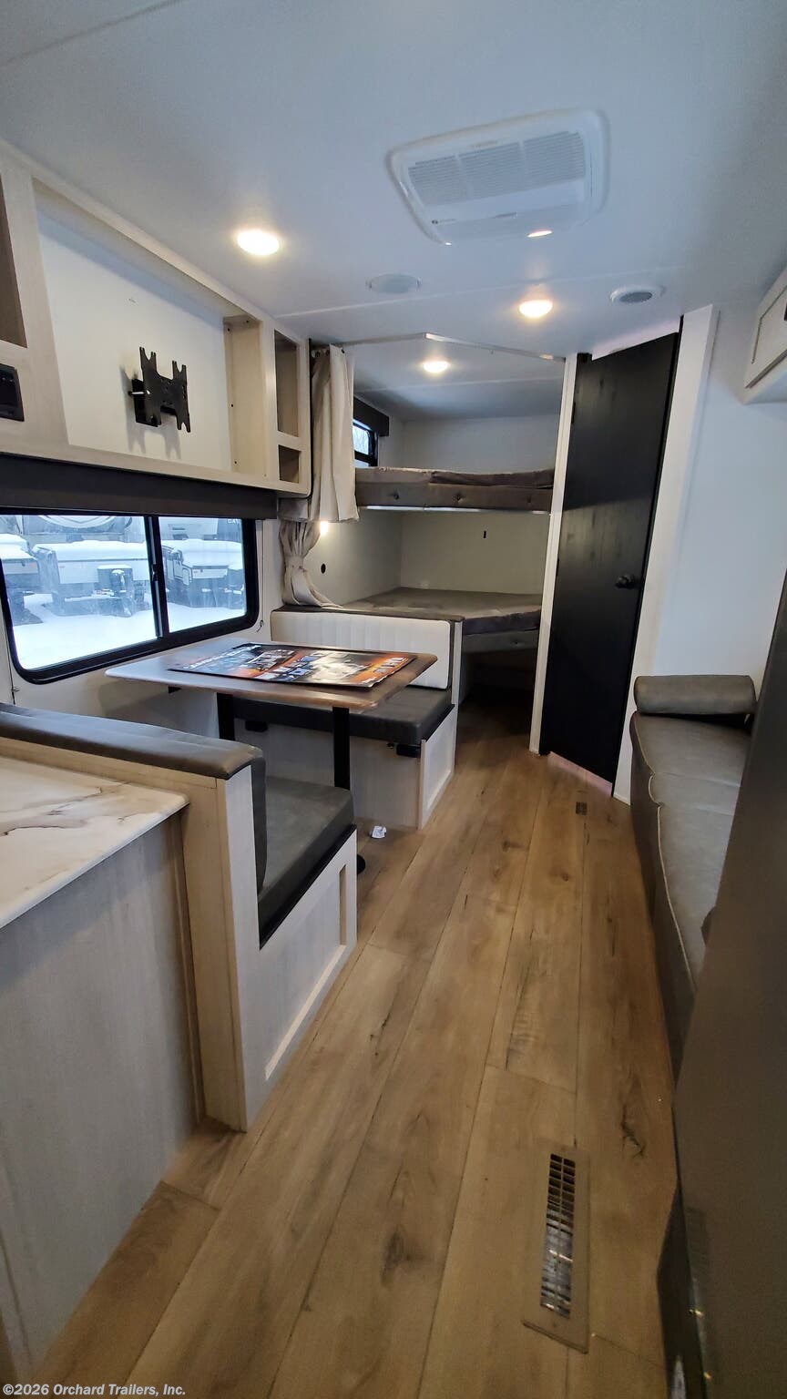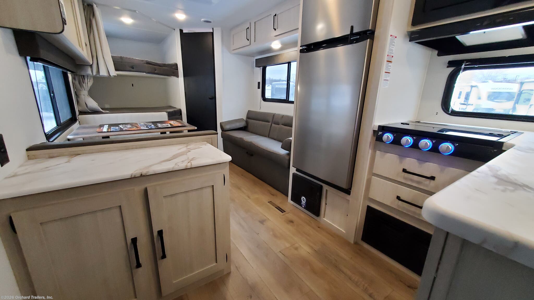 New 2026 Forst River Puma Camping Edition 23BHCE. Great sub-30' travel trailer for families! No Slide-Outs! Large corner bunk beds with folding bottom bed base for additional storage. Outside kitchen features griddle, sink, and refrigerator. MorRyde Entry Steps. Power tongue jack and awning. Booth dinette and folding couch. Private front bedroom with queen bed. Spacious bathroom. 12v Refrigerator. Call today for more information!