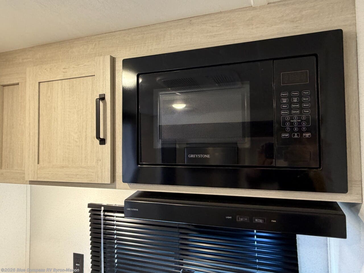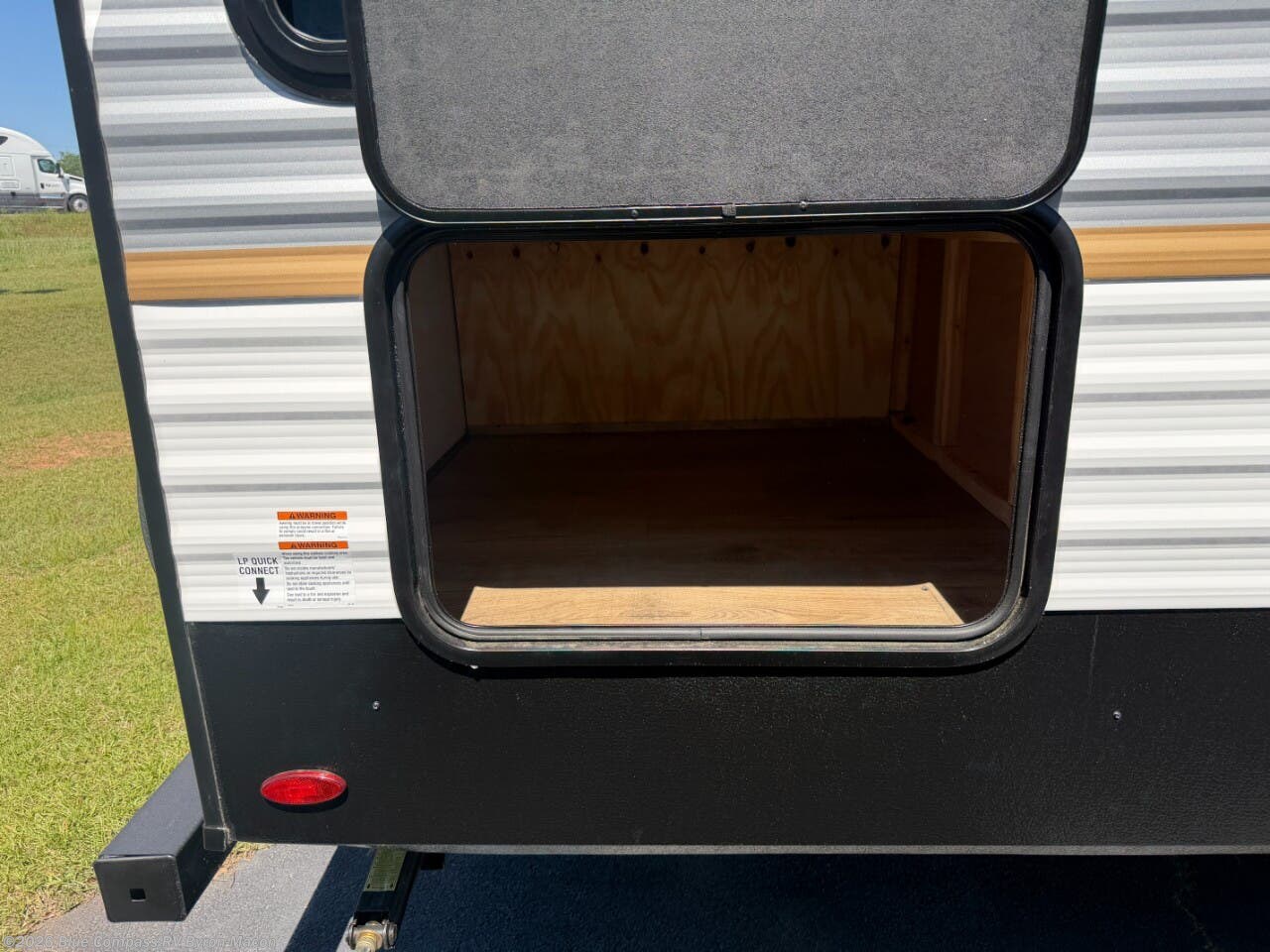 Your whole crew will love camping in this travel trailer since everyone can enjoy their own private space. The rear bunkhouses feature a private lower bunk room plus a private upper bunk room, each with their own door and a linen closet for storage space. The front master bedroom includes an RV queen bed, dual shirt closets, and easy access into the walk-thru bath. Head to the combined kitchen and living area to make dinner in the full kitchen, dine around the U-shaped dinette slide, and enjoy the fireplace! Outside, an optional micro kitchen with a grill can be added if you choose, and you'll find outside storage compartments to keep all your gear secure!