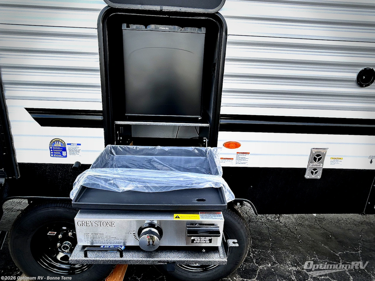 Your whole crew will love camping in this travel trailer since everyone can enjoy their own private space. The rear bunkhouses feature a private lower bunk room plus a private upper bunk room, each with their own door and a linen closet for storage space. The front master bedroom includes an RV queen bed, dual shirt closets, and easy access into the walk-thru bath. Head to the combined kitchen and living area to make dinner in the full kitchen, dine around the U-shaped dinette slide, and enjoy the fireplace! Outside, an optional mini kitchen with a griddle can be added if you choose, and you'll find outside storage compartments to keep all your gear secure!