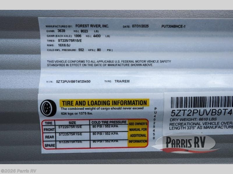 2026 Forest River Puma Camping Edition 304BHCE Specifications
