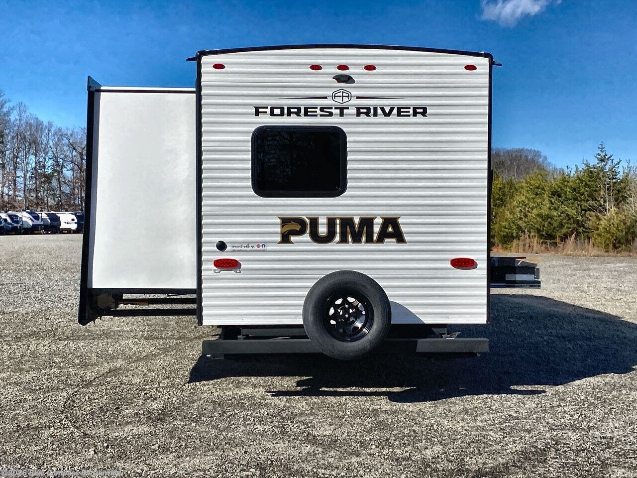The Puma Camping Edition by Forest River offer an affordable travel trailer for rookie campers or seasoned RVers! They are built with 5/8" tongue and groove plywood flooring and a front diamond plate for added protection. There are also exterior magnetic baggage door latches, back up camera prep, a battery disconnect. Head inside to find Thermofoil countertops with a smooth drop edge, bedroom USB ports and outlets, and pleated shades in the living room.