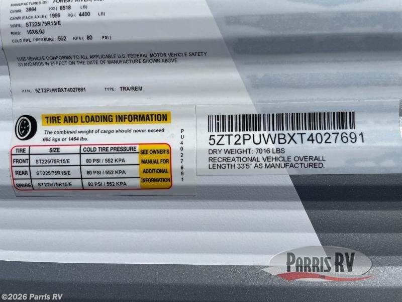 2026 Forest River Puma Camping Edition 305BHCE Specifications