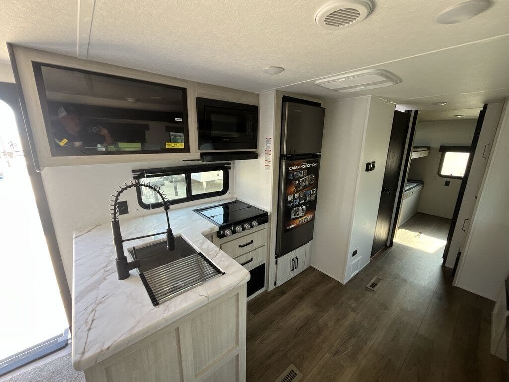 The Puma Camping Edition by Forest River offer an affordable travel trailer for rookie campers or seasoned RVers! They are built with 5/8" tongue and groove plywood flooring and a front diamond plate for added protection. There are also exterior magnetic baggage door latches, back up camera prep, a battery disconnect. Head inside to find Thermofoil countertops with a smooth drop edge, bedroom USB ports and outlets, and pleated shades in the living room.