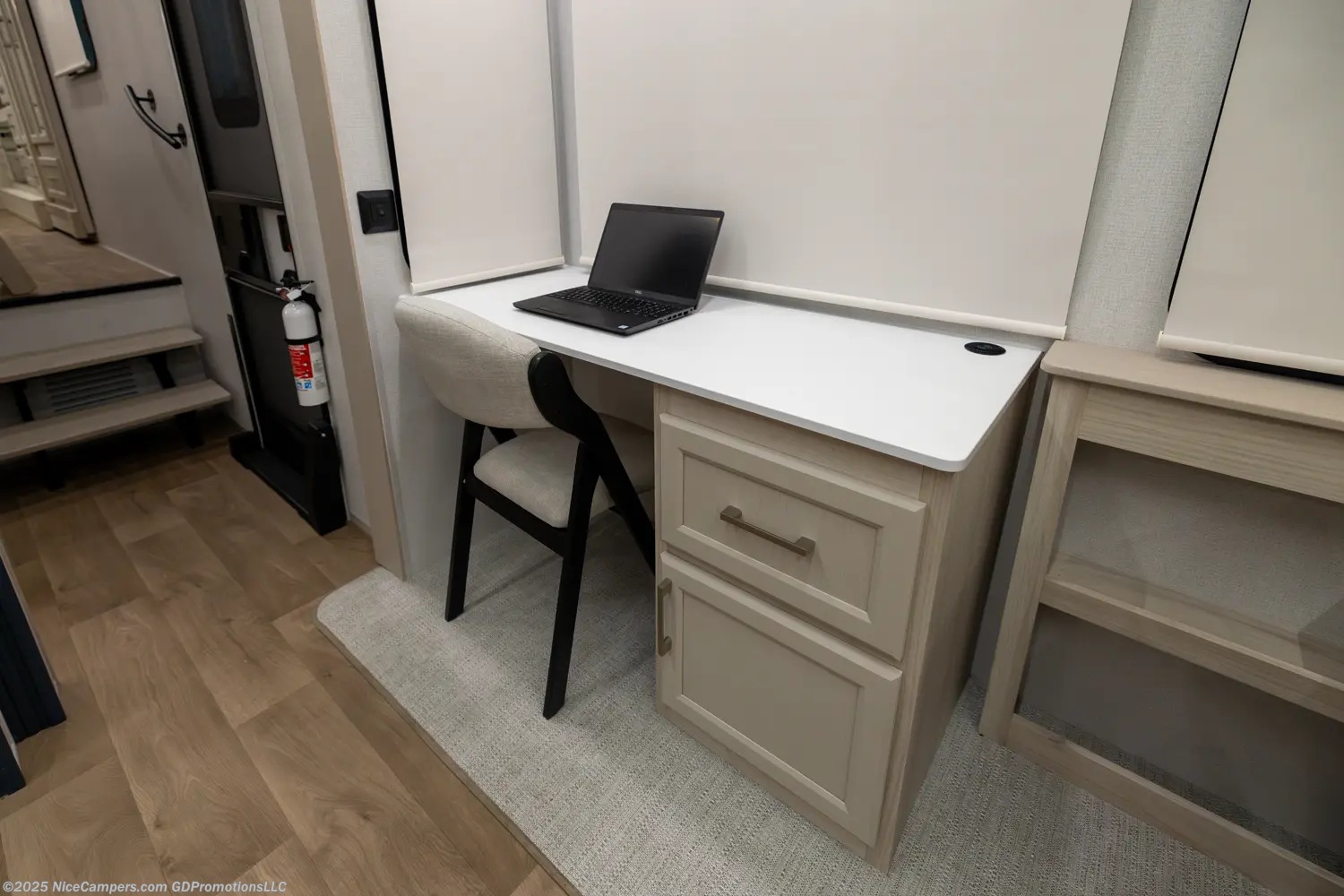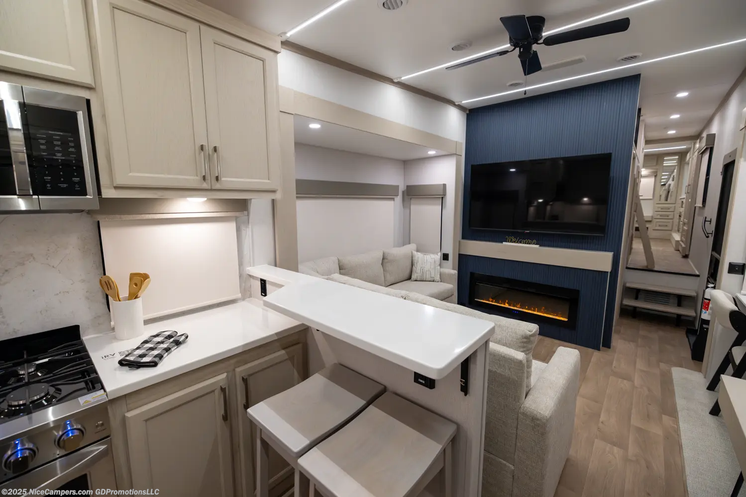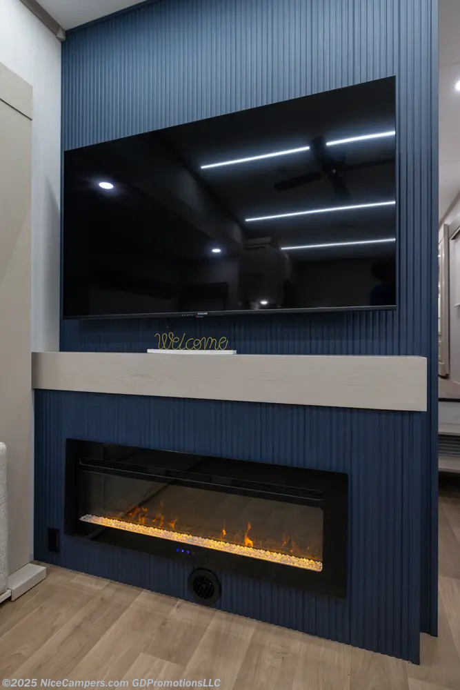 Day/Night Shades, Dinette, Fireplace, Shower, Solid Surface Countertops, Theater Seating, Toilet -