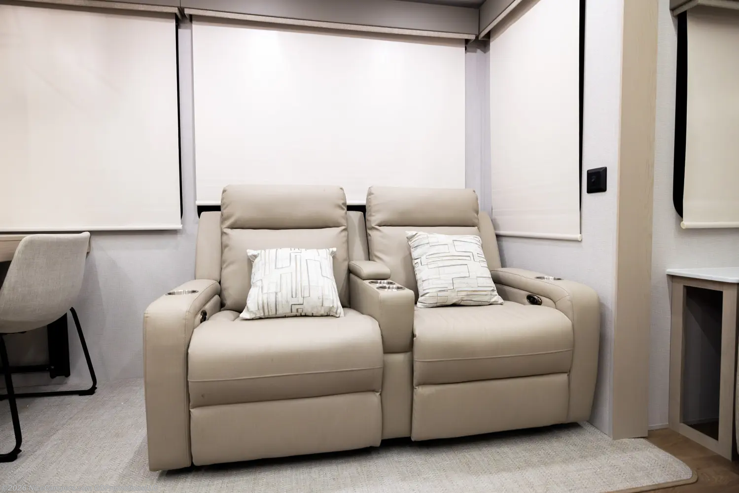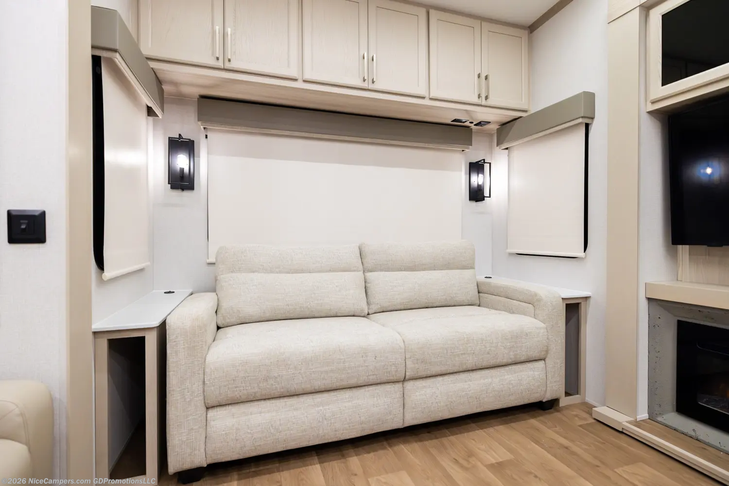Day/Night Shades, Dinette, Fireplace, Shower, Solid Surface Countertops, Theater Seating, Toilet -