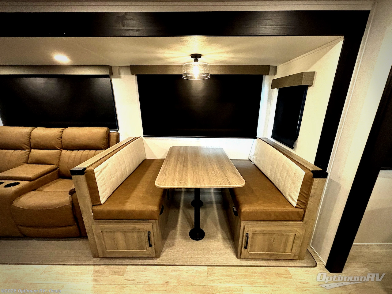 Each Puma Tracks travel trailer by Forest River is constructed with a fully enclosed/heated underbelly for added protection against the elements, plus a fully laminated roof and rear wall for durability. The slam latch baggage doors with magnets will make it easier than ever to pack up your camp gear, and the power awning with LED lights will provide shade during the day and inviting ambiance at night. Head inside to enjoy the roller shades, smoked glass kitchen cabinet doors, stainless-steel sink, and LED lights to keep your space well lit. Some of the available options include a bedroom A/C, a Wi-Fi booster, heated holding tanks, and more!