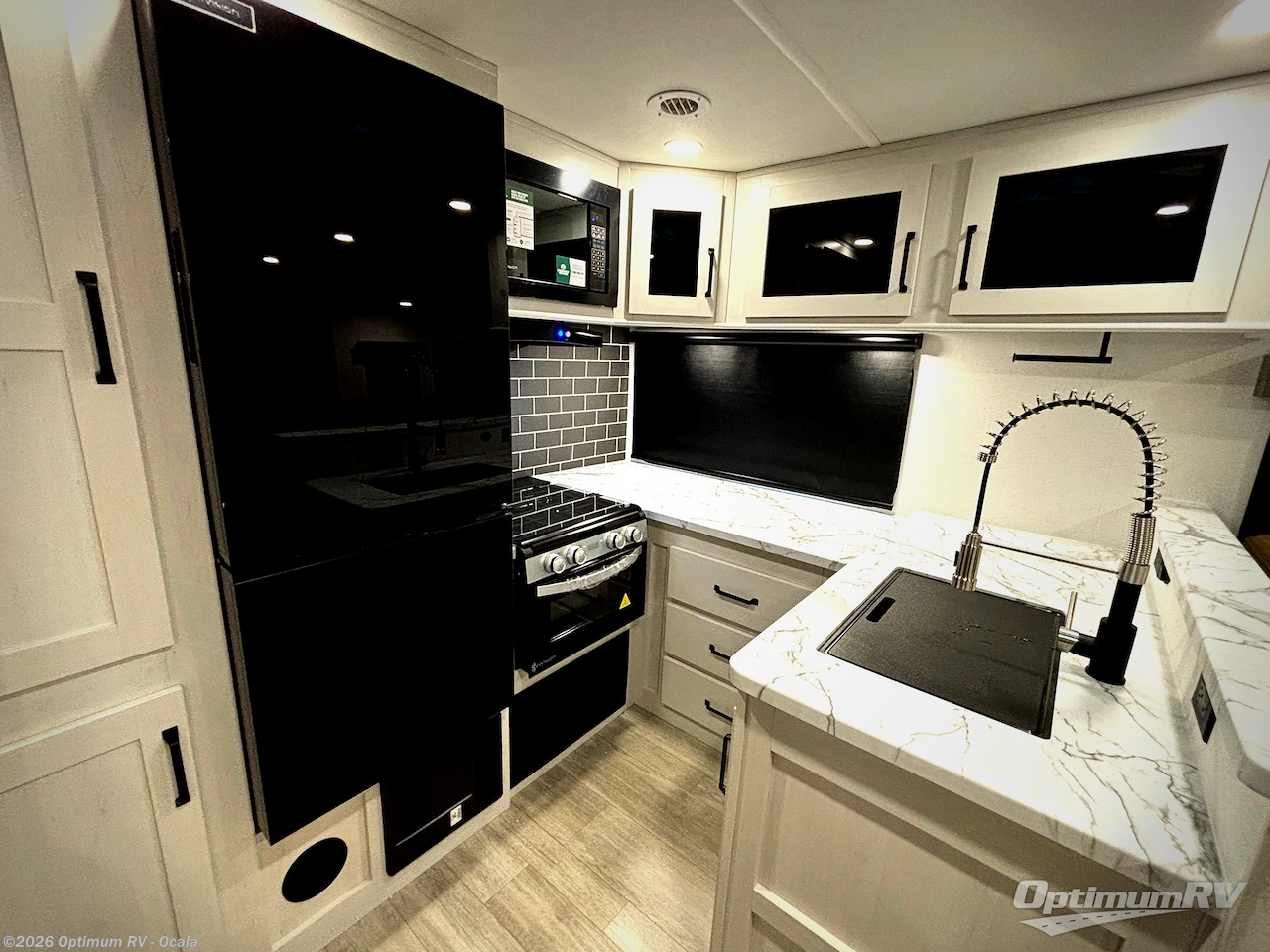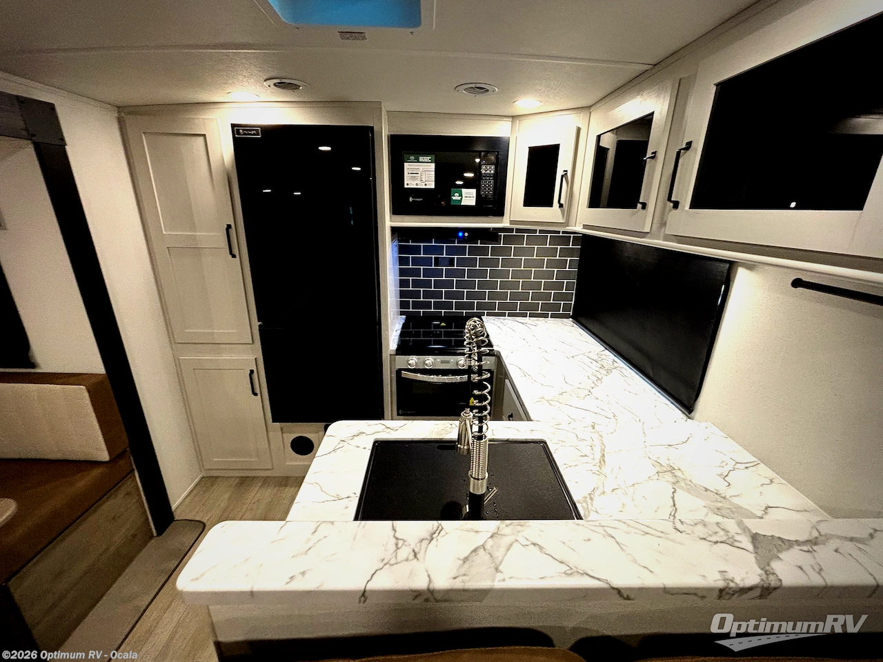 Each Puma Tracks travel trailer by Forest River is constructed with a fully enclosed/heated underbelly for added protection against the elements, plus a fully laminated roof and rear wall for durability. The slam latch baggage doors with magnets will make it easier than ever to pack up your camp gear, and the power awning with LED lights will provide shade during the day and inviting ambiance at night. Head inside to enjoy the roller shades, smoked glass kitchen cabinet doors, stainless-steel sink, and LED lights to keep your space well lit. Some of the available options include a bedroom A/C, a Wi-Fi booster, heated holding tanks, and more!