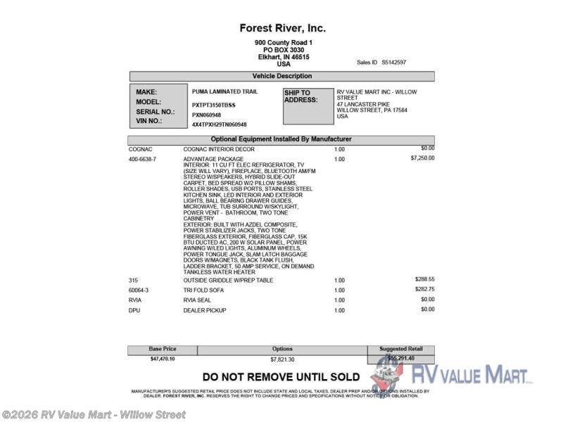 Request More Info on this 2026 Forest River Puma Tracks 3150TBSS Offered for sale by RV Value Mart - Willow Street