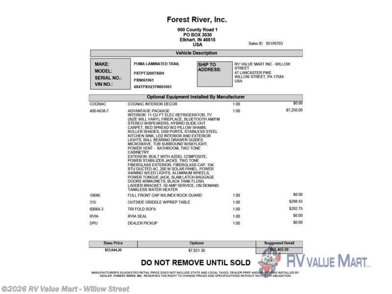 Request More Info on this 2026 Forest River Puma Tracks 3200TSBH Offered for sale by RV Value Mart - Willow Street