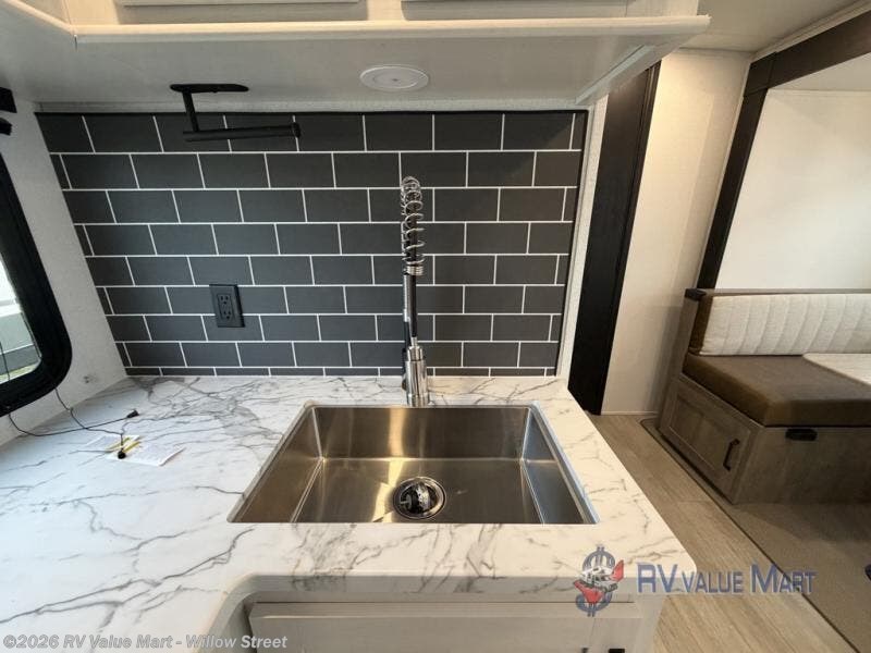 Each Puma Tracks travel trailer by Forest River is constructed with a fully enclosed/heated underbelly for added protection against the elements, plus a fully laminated roof and rear wall for durability. The slam latch baggage doors with magnets will make it easier than ever to pack up your camp gear, and the power awning with LED lights will provide shade during the day and inviting ambiance at night. Head inside to enjoy the roller shades, smoked glass kitchen cabinet doors, stainless-steel sink, and LED lights to keep your space well lit. Some of the available options include a bedroom A/C, a Wi-Fi booster, heated holding tanks, and more!