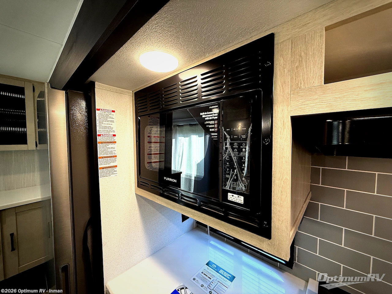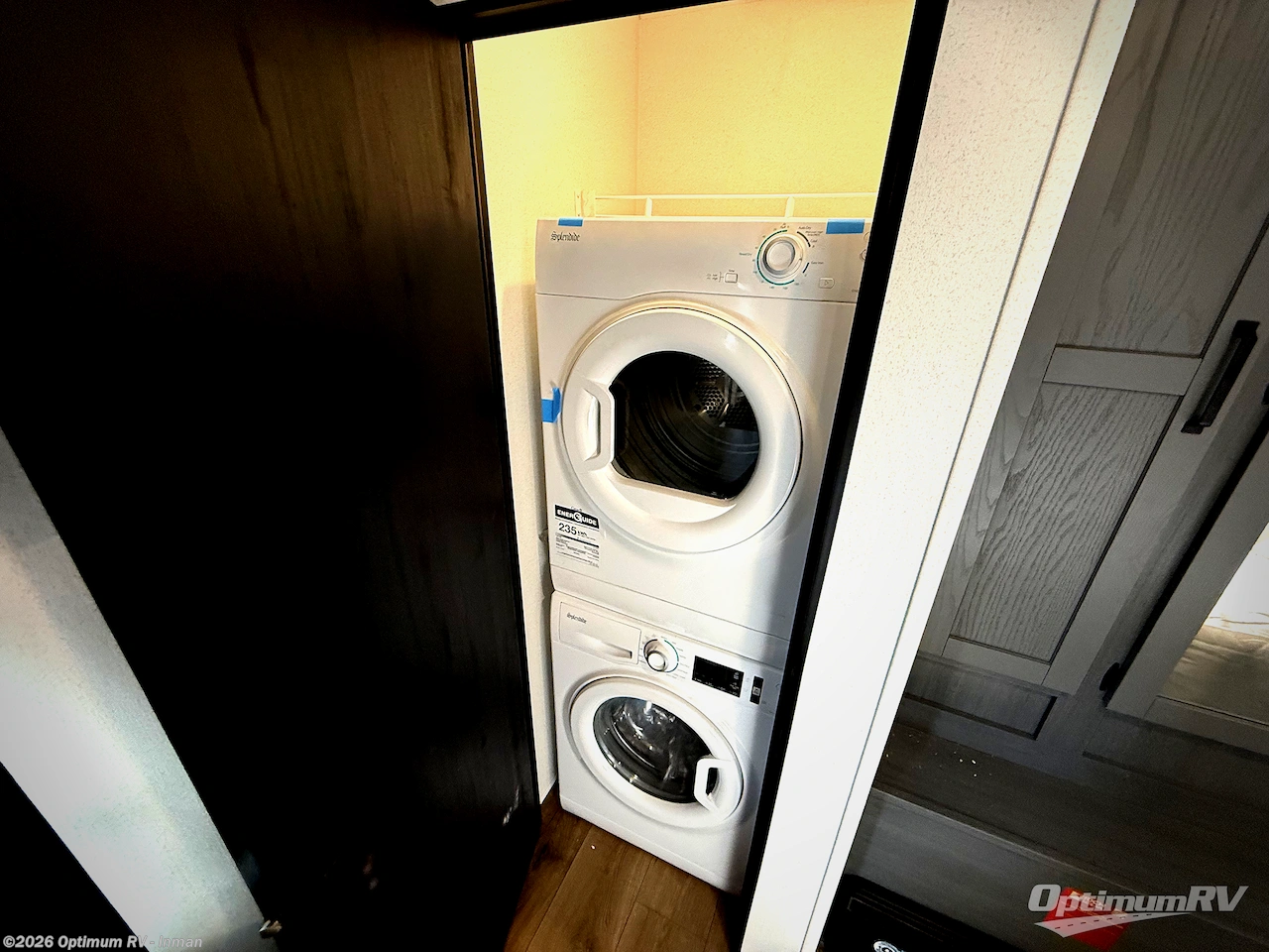 Get ready to enjoy your destination for a weekend or even longer in comfort with the front living and kitchen combined area. The sofa, table and chairs plus theater seating offer a place to relax, dine, and let guests sleep over. There is a kitchen island to prepare and serve meals from and wash the dishes. The kitchen offers full amenities including a residential-style refrigerator and plenty of storage. You will surely enjoy the natural lighting from the patio door, and the second entry/exit is located in the rear private bedroom where you can sleep like royalty on the king bed. There is also a closet with washer and dryer prep if you choose to add these appliances.