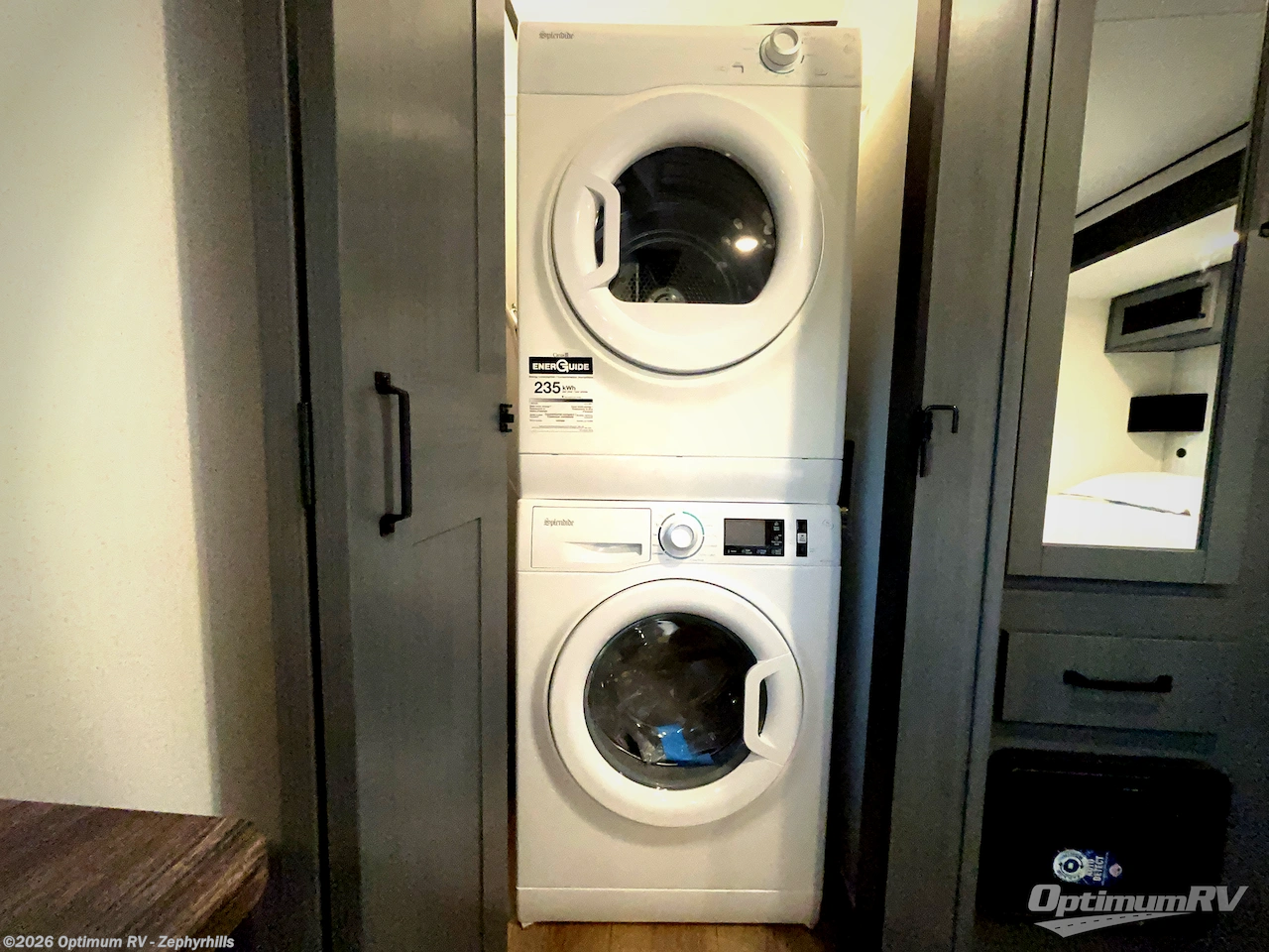 Wherever your destination may be, you can be sure to enjoy it to the fullest with this trailer in tow! With two entry doors, you can enter in through the rear private bedroom or the main living area. The bedroom includes a king bed slide out, a wardrobe/closet to keep your clothes organized, plus a closet with washer and dryer prep. Just outside this room are steps that lead to the large loft area with a 58" x 58" bunk mat and a cabinet on one side, plus two 32" x 69" bunk mats on the other. There is also a cabinet and a wardrobe/closet for plenty of storage space. Once you've headed back downstairs, you can relax on the theater seating, front sofa, or table and chairs with a bench seating. And the chef of your group will love the kitchen with its residential style refrigerator and pantry, kitchen island, and four burner cooktop!