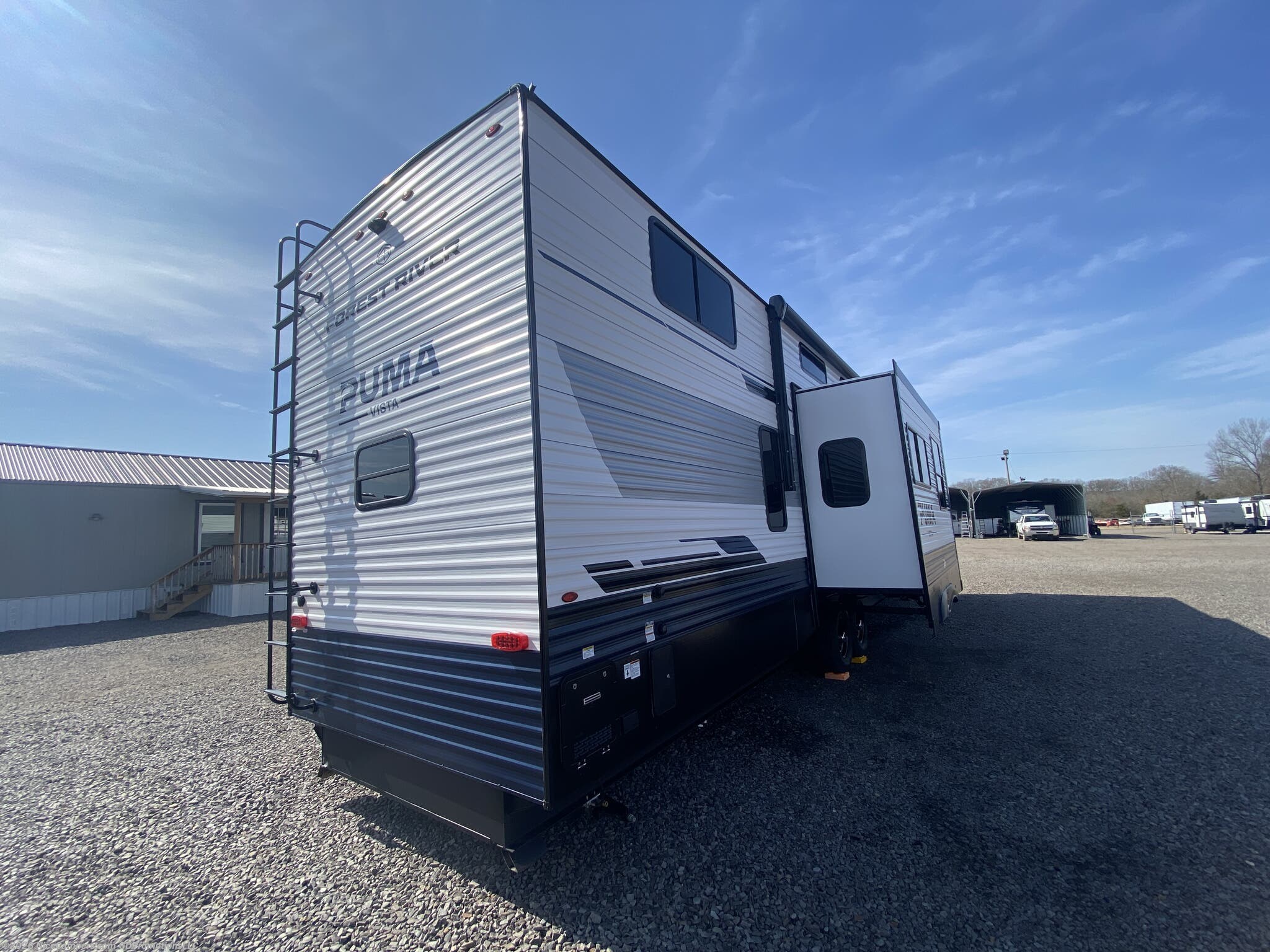 This 2026 Forest River Puma Vista 421LFT is outfitted with all the features you need for happy camping. Be a part of the Forest River family with this 2026 Forest River Puma Vista 421LFT. This rig sleeps 9, so it makes the perfect family RV. This rig cuts no corners on space, expanding into a massive living area with 4 slides. If you’re thinking of heading off grid, this rig has a 43 fresh water tank.