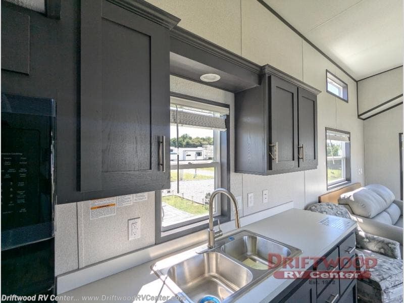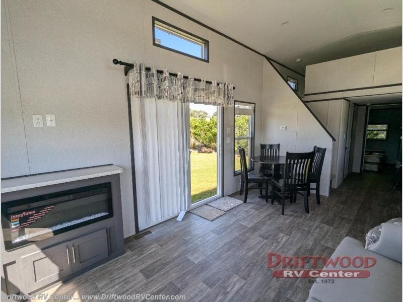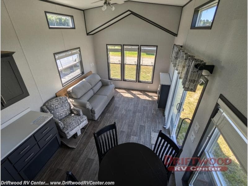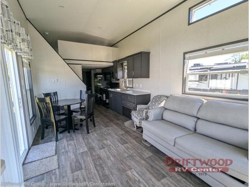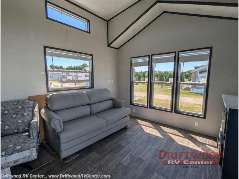 Step inside this park model and see just how much fun you will have on your next getaway! It features a rear private bedroom with a queen-sized bed for you to enjoy a good night's rest, as well as dual closets and drawers to keep your belongings organized. Just outside the bedroom, there is a full bathroom that is equipped with everything you will need to keep clean and refreshed each day. You can whip up your favorite meals easily with the four-burner cooktop and then dine at the dinette table with chairs! The swivel chair and sofa will provide a place to relax, and the overhead loft layout will be great for additional sleeping space or storage!