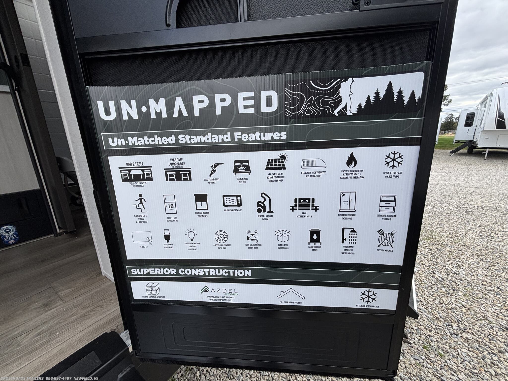 - Electrical: 30A and 50A service options • Solar panels • Auxiliary battery