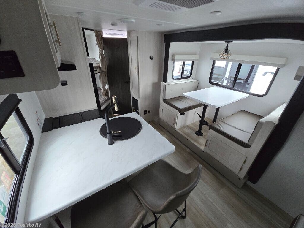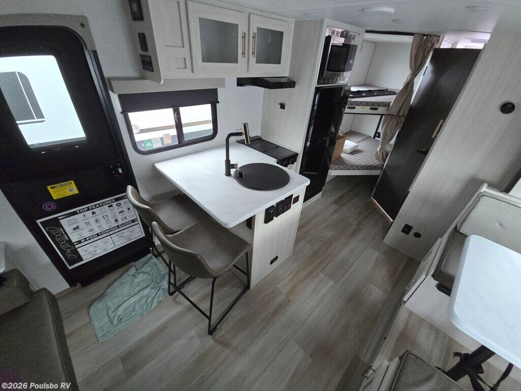 Introducing the 2026 Forest River R-Pod RP-203, an exceptional choice for those who love to explore and enjoy the great outdoors. This brand new travel trailer measures approximately 24.93 feet in length and features a generous sleeping capacity of up to 8 people, making it ideal for families or groups of friends. The well-designed living area is complemented by a practical bunkhouse that includes two bunk beds, providing plenty of flexible sleeping arrangements. Equipped with one slide-out, this RV offers additional space and comfort for everyone on board. The kitchen, located at the center of the trailer, is well-equipped for meal preparation, and boasts a standard oven and stove, along with a microwave for quick warm-ups. The rear bathroom provides a convenient layout, including all necessary amenities for your comfort. This model includes an array of features designed to enhance your RVing experience, such as automatic air conditioning, leveling jacks for easy setup, and a power retractable awning for outdoor enjoyment. Further conveniences include a back-up camera prewiring for added safety and a central vacuum system, making maintenance a breeze. With a dry weight of 4584 pounds and a GVWR of 6084 pounds, the R-Pod RP-203 is equipped for both adventure and relaxation. As a family-owned, award-winning local RV dealer with multiple locations in Sumner, Everett, Kent, and Mt. Vernon Washington, Poulsbo RV is here to help you find the perfect RV. Stock#: M3655, VIN: 5ZT2RPJB6TV027135.