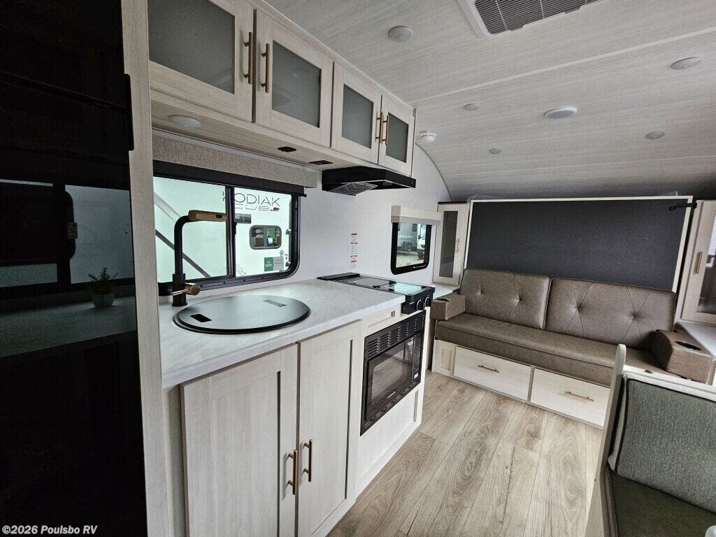 The 2026 Forest River R-Pod RP-200 is a brand new compact travel trailer built to offer an enjoyable RV experience for up to four people. Its 24.93-foot length provides a manageable size that still maximizes livable space and flexibility for travelers eager to explore the great outdoors. This model features a bunkhouse layout ideal for families or groups, ensuring comfortable sleeping accommodations without sacrificing common area room. Inside, you will find a well-designed living area that promotes easy relaxation and convenience throughout your adventures. Unlike larger models with slide-outs, the RP-200 maintains a sleek, no-slide design for straightforward towing and setup, complemented by a single awning that extends your living space outdoors, perfect for enjoying fresh air. Essential conveniences such as leveling jacks are included, ensuring stability wherever you park. With a dry weight of 4544 pounds and a hitch weight of 585 pounds, this trailer balances lightweight portability and durability for a variety of destinations. The thoughtful floorplan invites socializing and unwinding, while sleeping arrangements provide privacy and rest for every traveler. As a family-owned, award-winning local RV dealer with multiple locations in Sumner, Everett, Kent, and Mt Vernon Washington, Poulsbo RV is here to help you find the perfect RV. Stock#: S907, VIN: 5ZT2RPJB8TV027489.