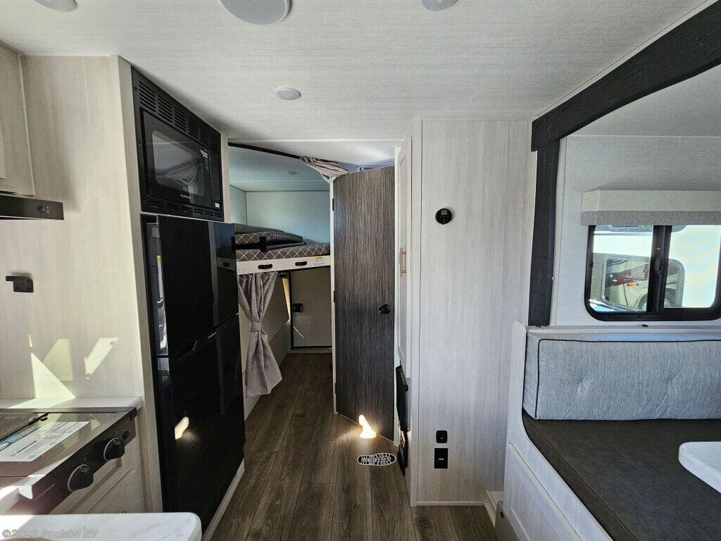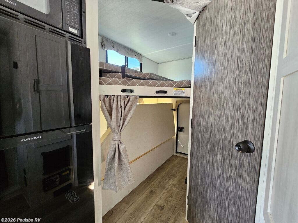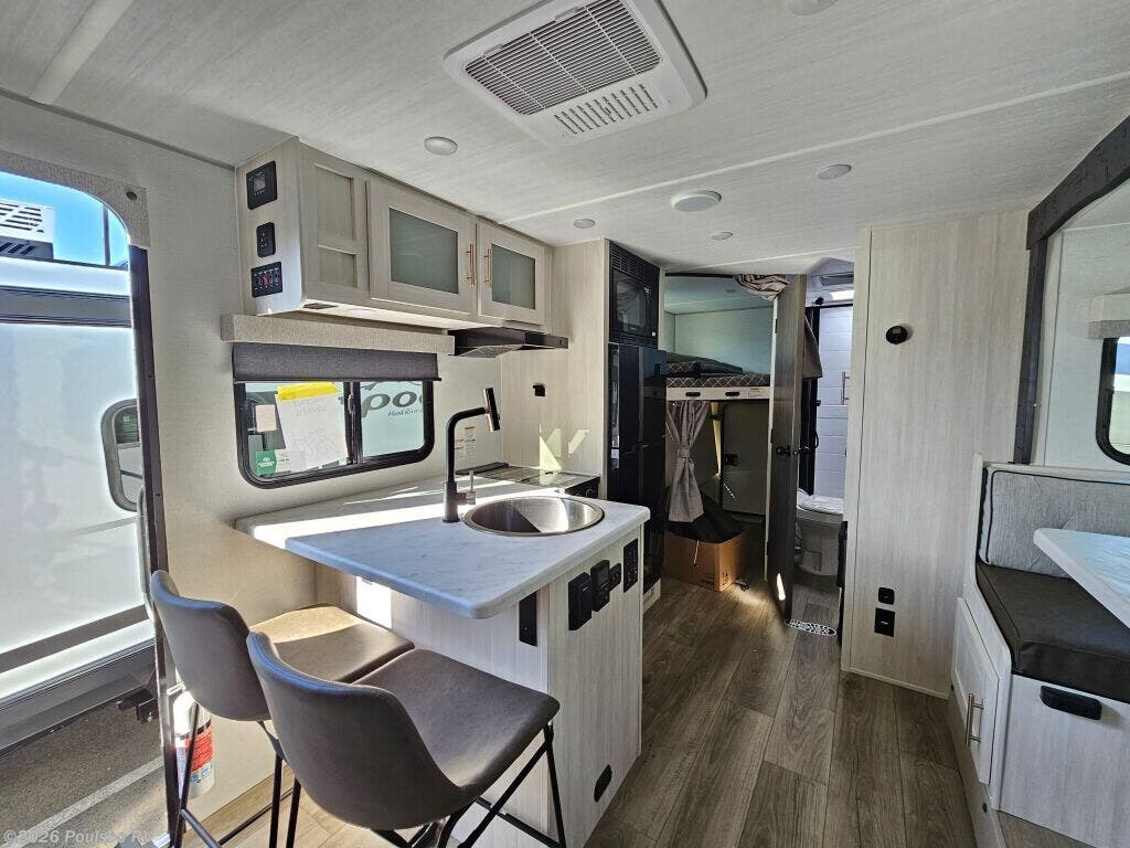 The 2026 Forest River R-Pod RP-203 is thoughtfully crafted for those seeking a perfect blend of comfort, convenience, and versatility in their travels. This brand new travel trailer measures nearly 25 feet in length and comfortably sleeps up to eight people, making it an excellent choice for families or groups who want to enjoy the flexibility of RV living without sacrificing personal space. Its smart floor plan includes a bunkhouse area that adds extra sleeping accommodations, ideal for kids or guests, and the single slide out greatly expands the main living space to allow for more room to move around and relax indoors. The living area is well-appointed to serve as a welcoming retreat after a day of exploration, providing a cozy place to gather and unwind. Practical features like a power awning offer protection from sun and rain, enhancing outdoor living options, while the included leveling jacks ensure quick and stable setup at any campsite. The R-Pod weighs 4,584 pounds dry with a hitch weight of 635 pounds, making it manageable to tow and easy to handle on the road. Every element is designed to encourage a hassle-free and enjoyable RV experience, from efficient use of space to careful attention to sleeping and family needs. As a family-owned, award-winning local RV dealer with multiple locations in Sumner, Everett, Kent, and Mt. Vernon Washington, Poulsbo RV here to help you find the perfect RV. Stock#: K6197, VIN: 5ZT2RPJB2TV027505.