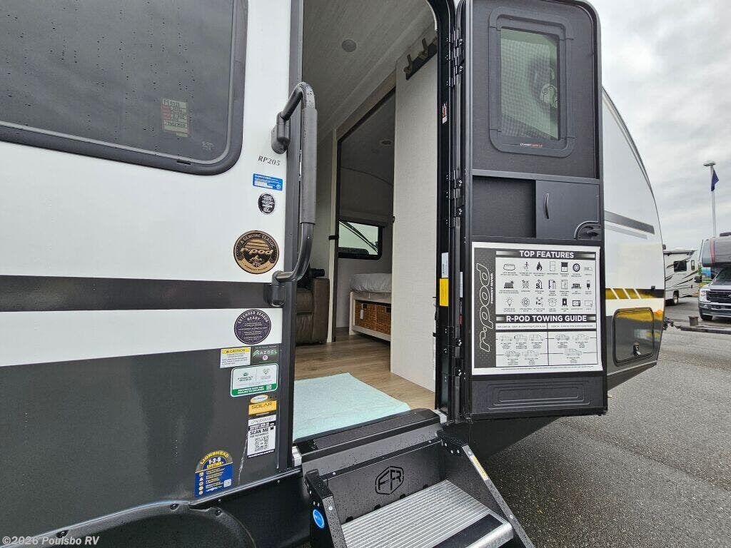 Discover the 2026 Forest River R-Pod RP-205, a brand new travel trailer built to elevate your camping experience with comfort and convenience. At just under 25 feet in length, this model strikes the perfect balance between compact maneuverability and spacious living. It comfortably sleeps up to six people, providing flexible sleeping arrangements for families or friends who want to explore the open road together. The interior living area is designed to be inviting and functional, making it easy to relax and enjoy quality time indoors after outdoor adventures. One large awning enhances your camping setup by creating an ideal shaded outdoor space where you can unwind or entertain with ease. Though it does not have slide-outs, the layout maximizes every inch of space available to provide a cozy environment. The dry weight is 4643 pounds, making towing manageable without sacrificing durability or safety. With a hitch weight of 455 pounds, you will benefit from stability and security while on the road. A variety of convenient features intended to simplify your travel and setup allow you to focus on the joys of RV life. Whether it is your first camping trip or a seasoned getaway, this R-Pod model delivers the essentials you need for memorable adventures. Poulsbo RV is proud to offer this trailer at our location in Mt. Vernon, ensuring you receive the expert support you deserve. As a family-owned, award-winning local RV dealer with multiple locations in Sumner, Everett, Kent, and Mt. Vernon Washington, Poulsbo RV here to help you find the perfect RV. Stock#: M3721, VIN: 5ZT2RPKB8TV027510.