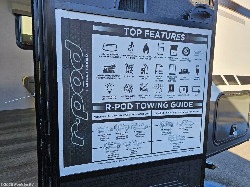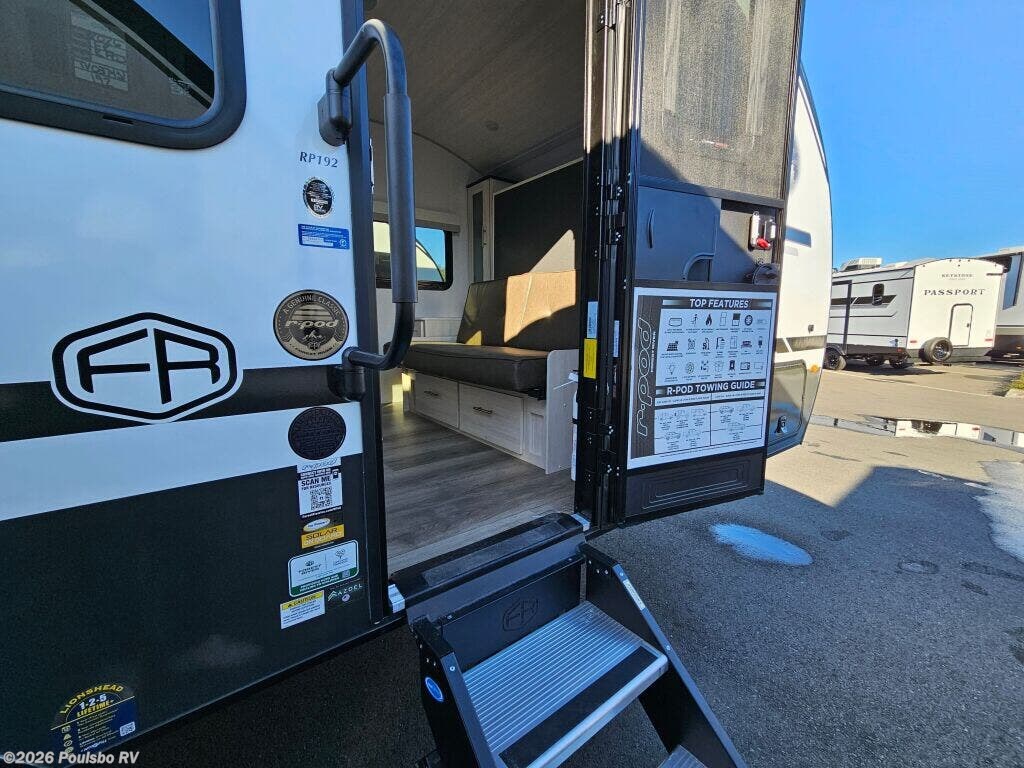 The 2026 Forest River R-Pod RP-192 offers a compact and efficient design perfect for adventurous travelers seeking freedom and comfort on the road. This new travel trailer spans 22.31 feet in length and provides flexible sleeping accommodations for up to three people, making it an ideal choice for couples or small families. The thoughtfully designed interior maximizes living space without the need for slide-outs, ensuring easy towing and maneuverability. Inside, you will find a welcoming living area that balances functionality and comfort, creating a cozy environment for relaxing after a day of exploration. Convenience features such as a single awning provide outdoor shade and shelter, enhancing your camping experience. This model includes a balanced hitch weight of 385 pounds and a dry weight of 3649 pounds, ensuring stable travel and secure leveling on diverse terrains. The RP-192 is crafted with practical elements to accommodate your lifestyle, from dependable shelter to user-friendly setup. As a new model, it represents the latest in design and innovation from Forest River. Experience the freedom of RVing with ease and confidence, knowing your travel trailer supports your journeys with convenience and thoughtful touches. As a family owned, award winning local RV dealer with multiple locations in Sumner, Everett, Kent, and Mt Vernon Washington, Poulsbo RV here to help you find the perfect RV. Stock#: S904, VIN: 5ZT2RPHC7TV027451.