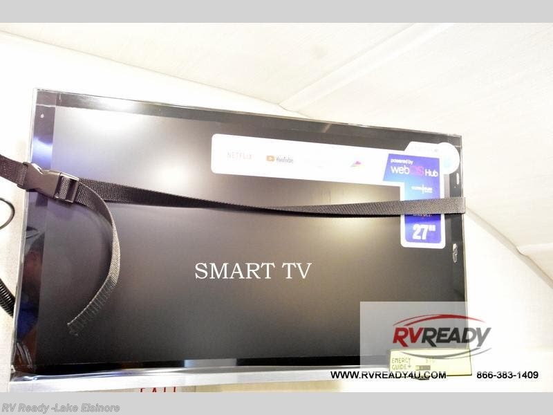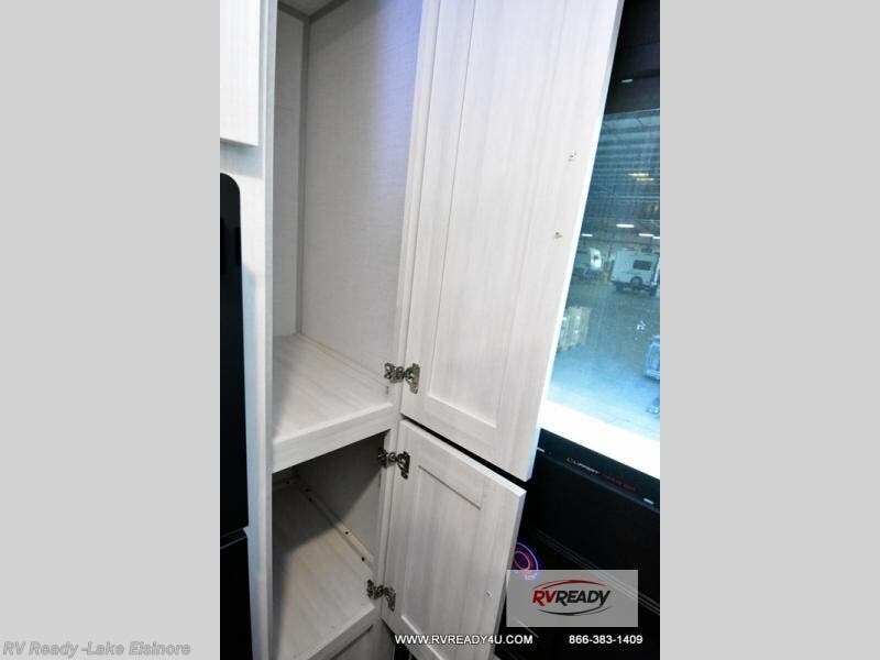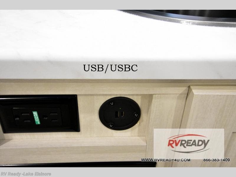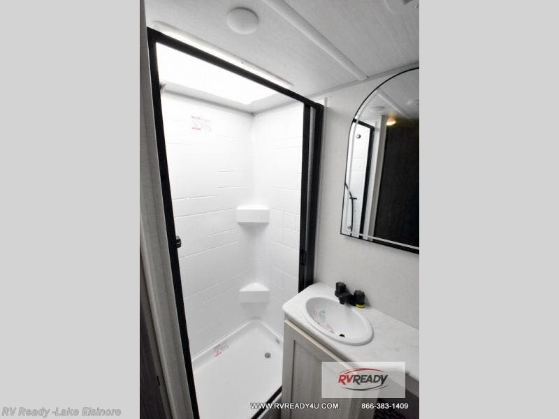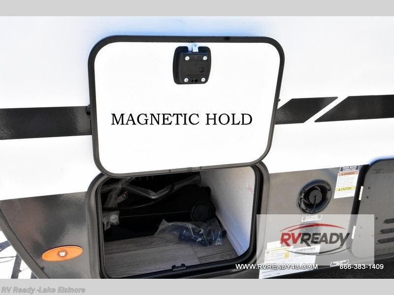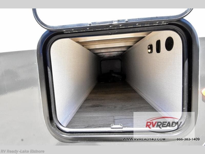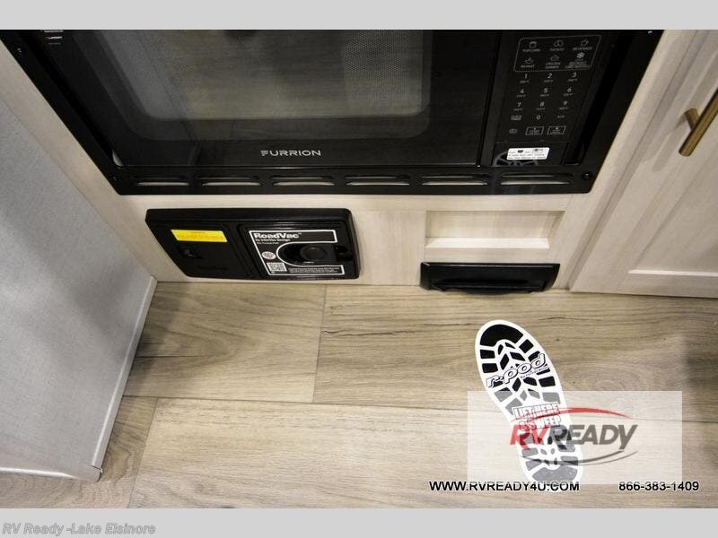 Weekends at the lake just got sweeter in this cozy travel trailer. You can prepare your meals each day on the two burner cooktop, or in the convection microwave. There is a sofa to relax on with a good book, plus a booth dinette up front that features a Murphy bed you can fold down at night. This model also includes a 12V black glass refrigerator to keep your perishables fresh, and a pantry to store snacks and dry goods.